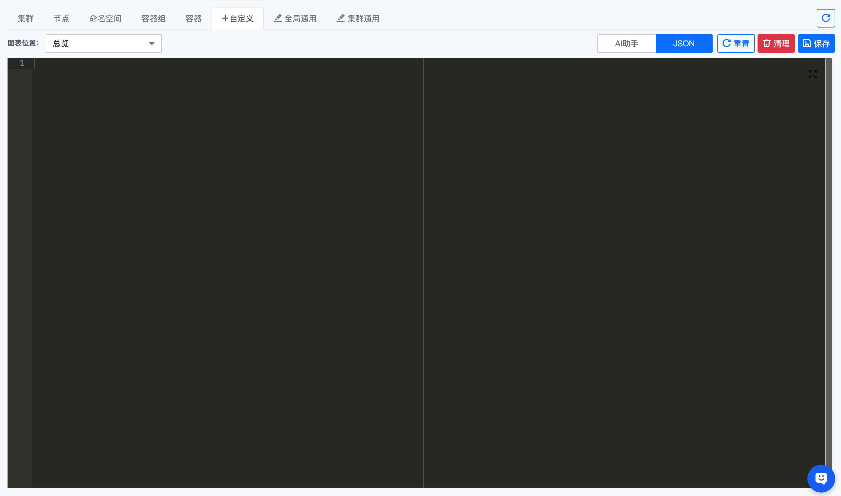 在您的 云平台总览 界面 中点击 自定义 页签,点击AI助手按钮 启动聊天窗口。