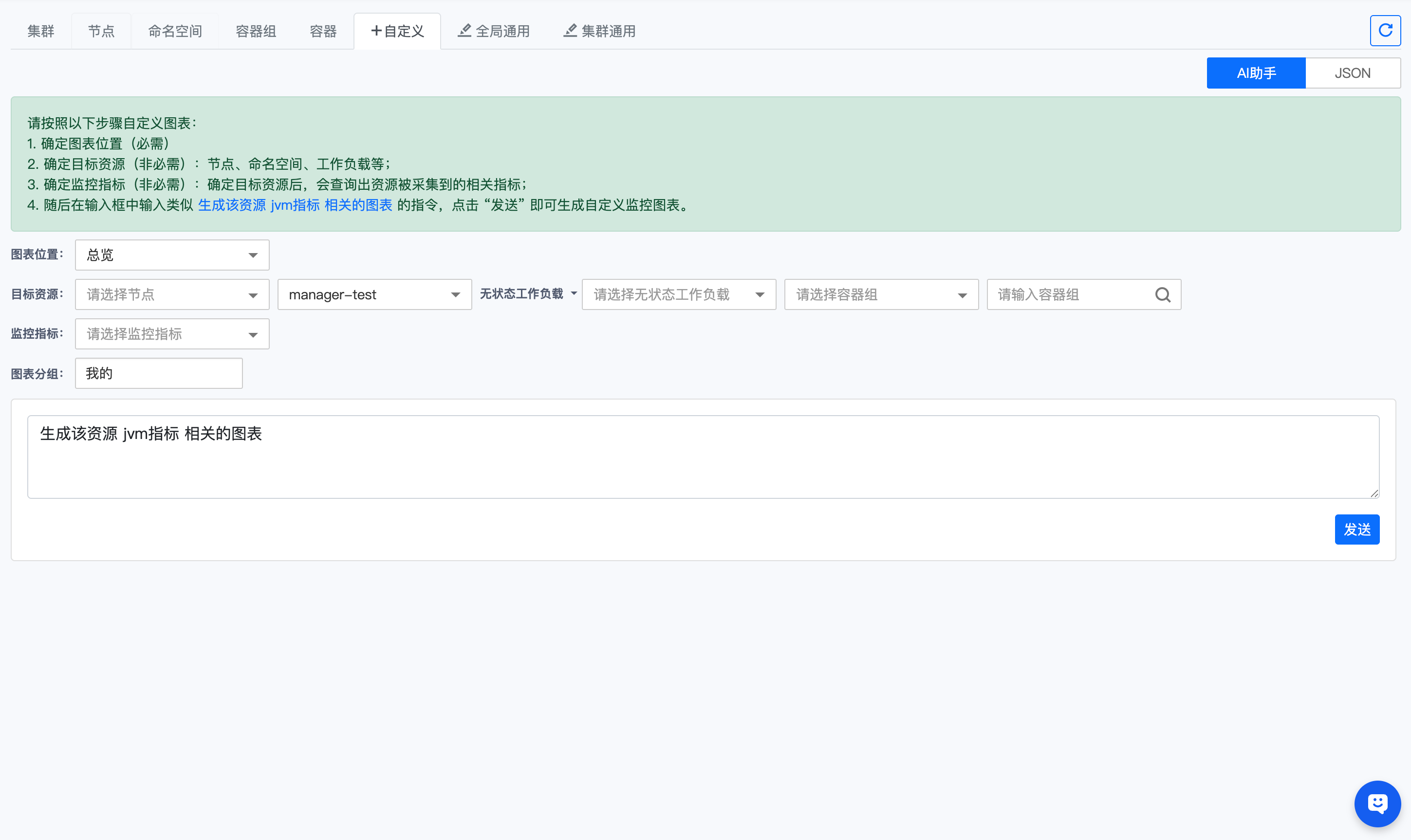 选择目标资源和生成图表要求后点击发送