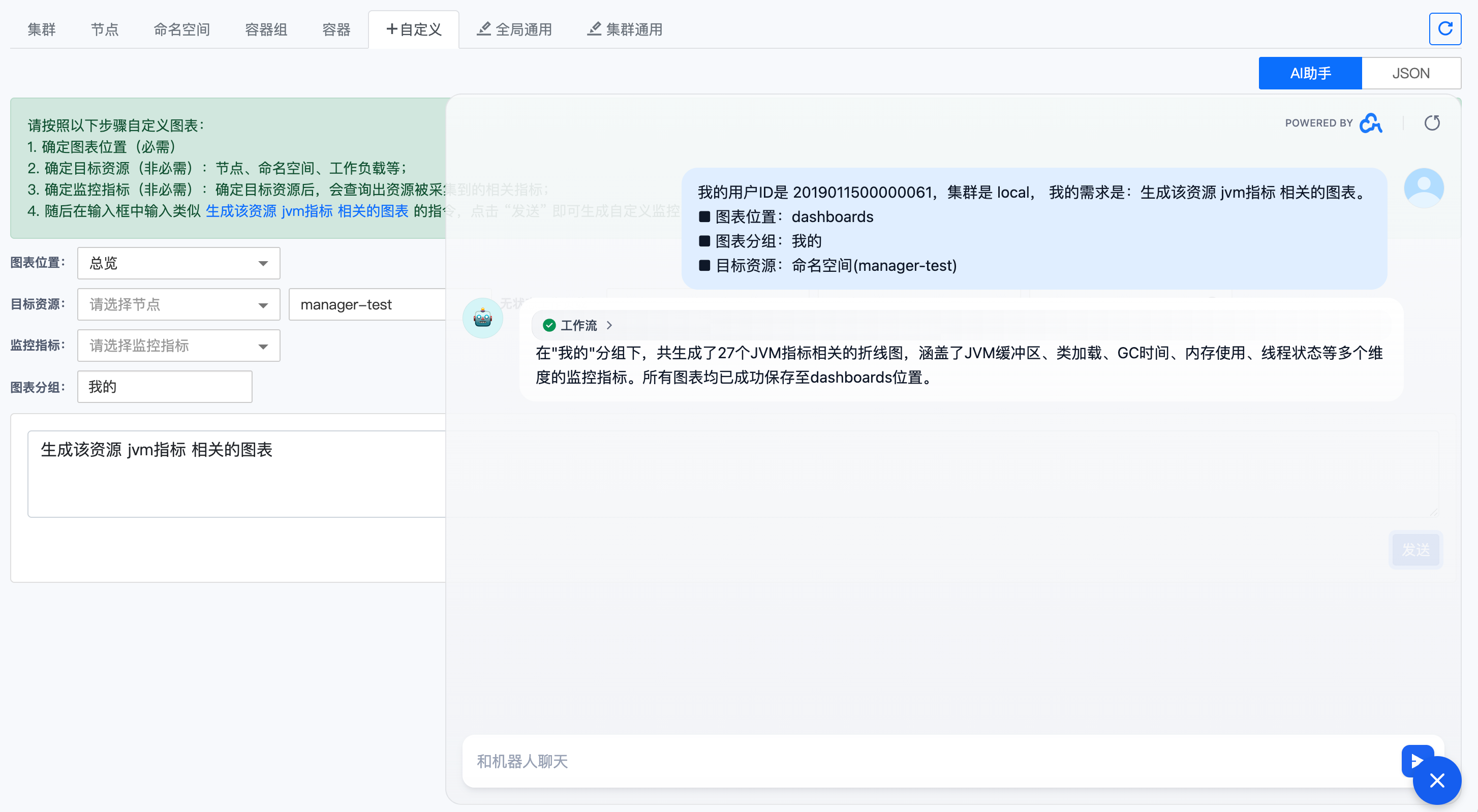 人工复核: 强烈建议 在将AI生成的图表用于关键告警或决策前,进行人工检查确认,确保指标、维度、时间范围、图表类型等均正确无误。