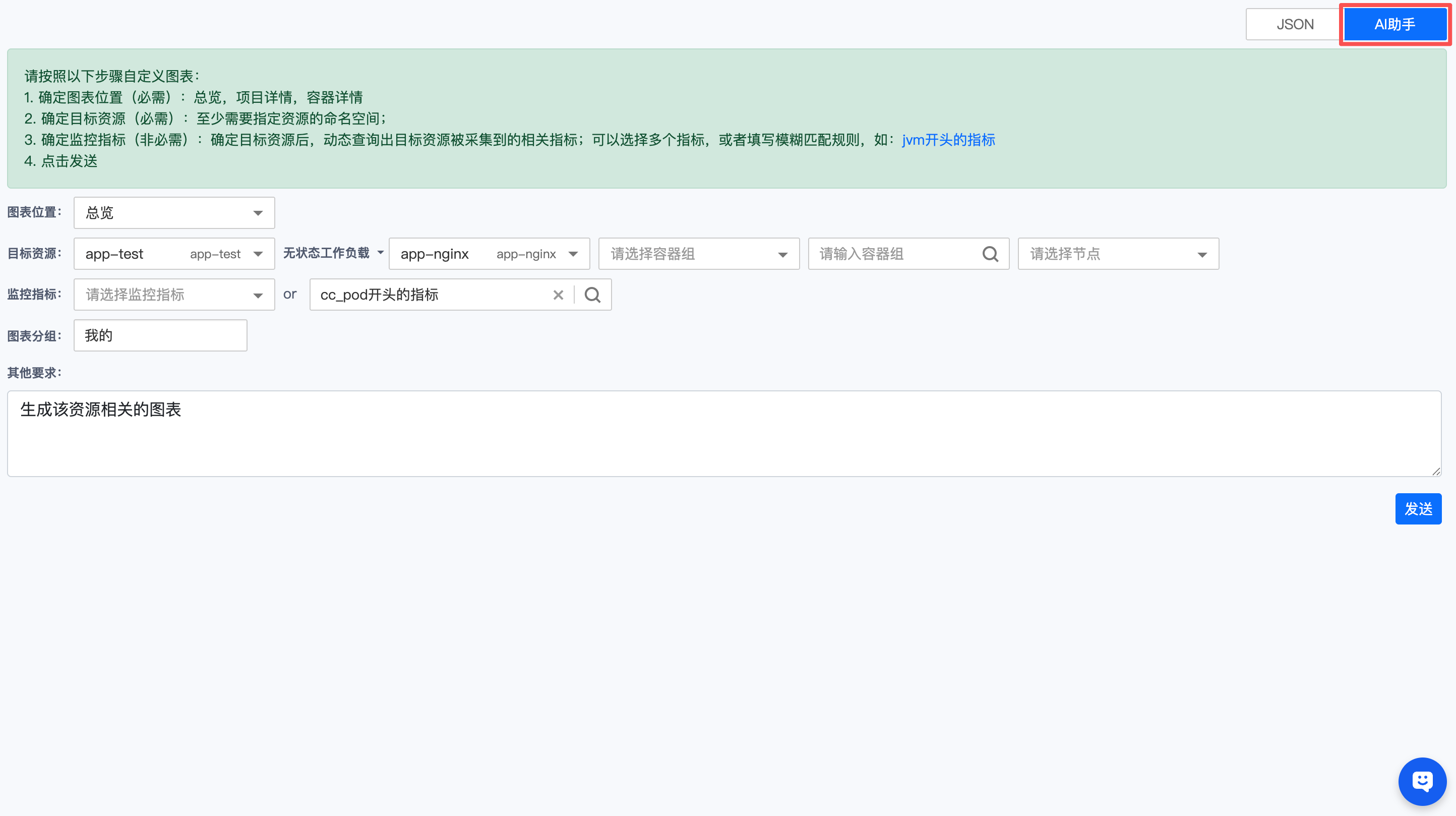 - 切换至 【自定义】 标签页,即可【自定义监控图表】。