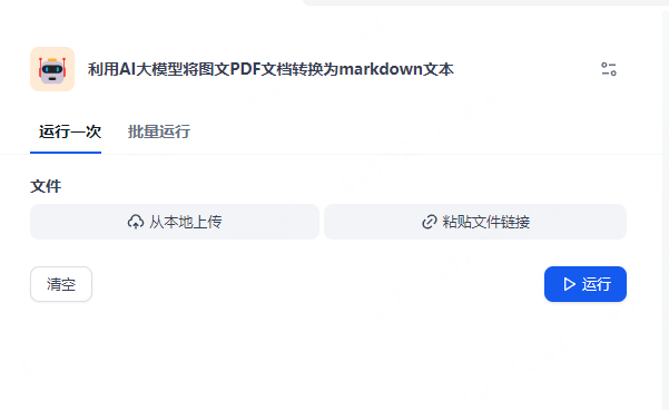 点击“从本地上传”,上传要转换的pdf文件,之后点击“运行”开始执行