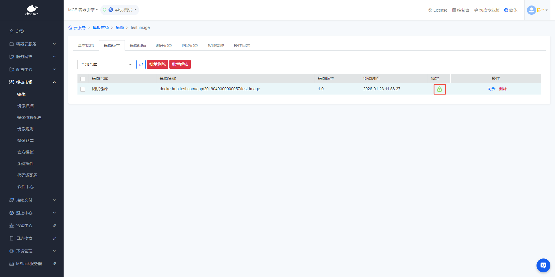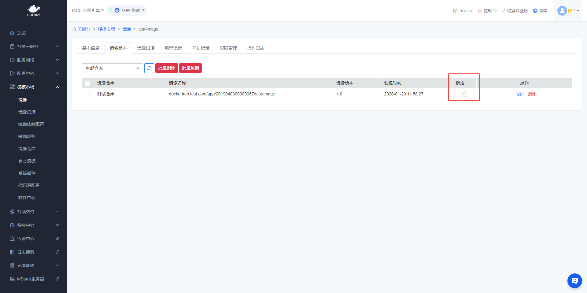 - 在【镜像版本】中,可以锁定/解锁各个版本的镜像
