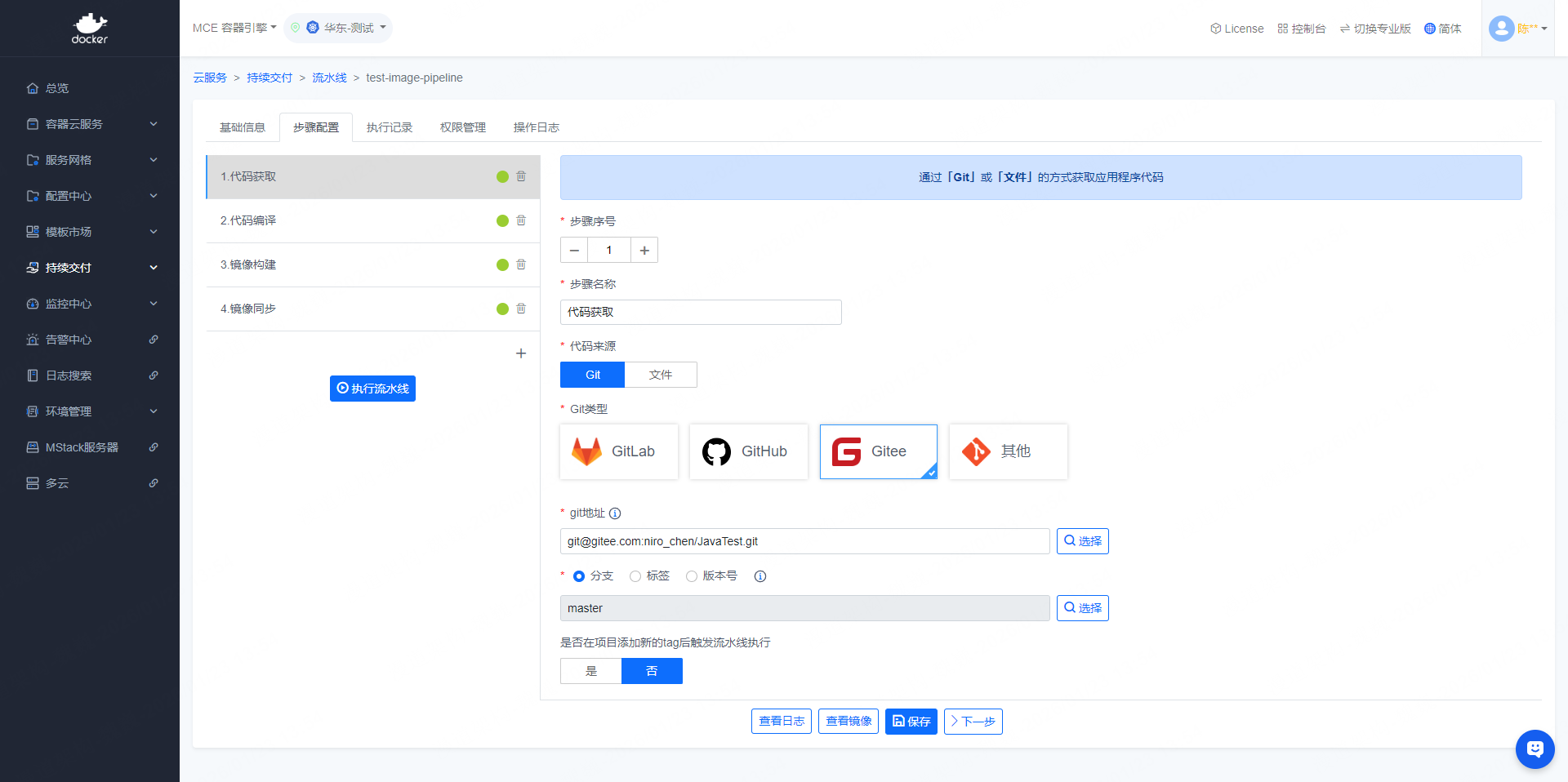 - 部署:若勾选部署流水线将增加镜像部署的步骤