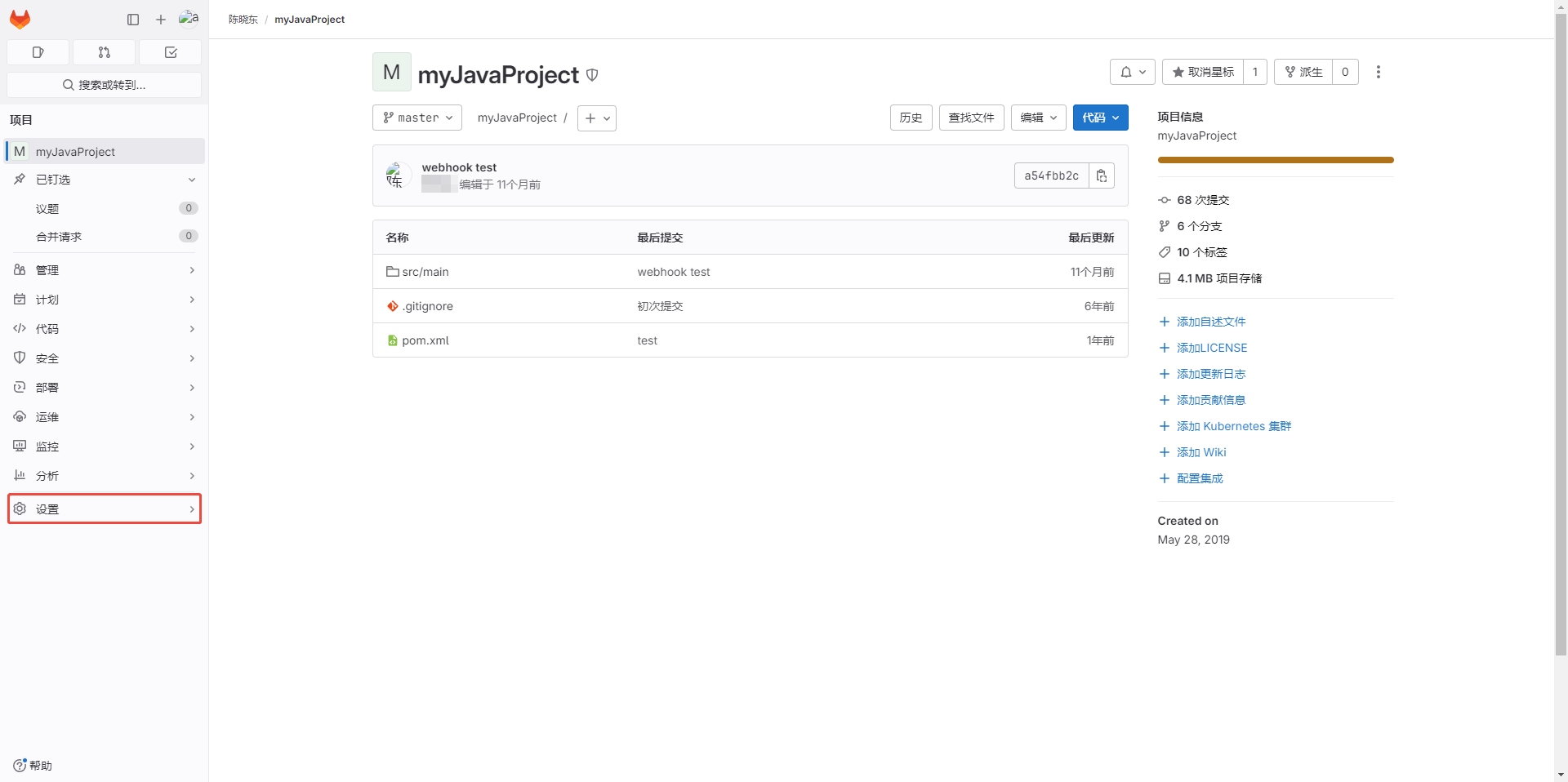 一、登录GitLab,点击【设置】