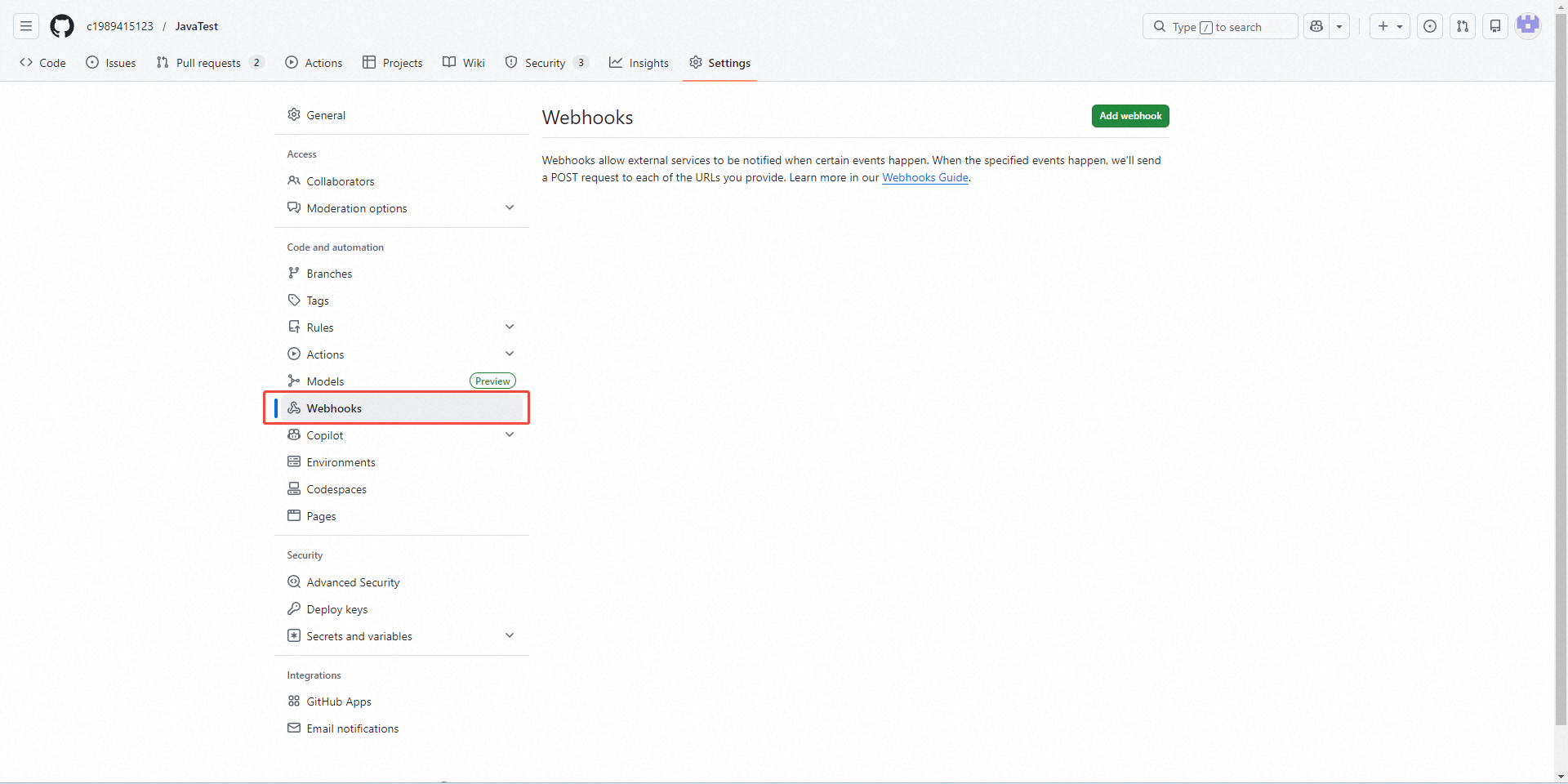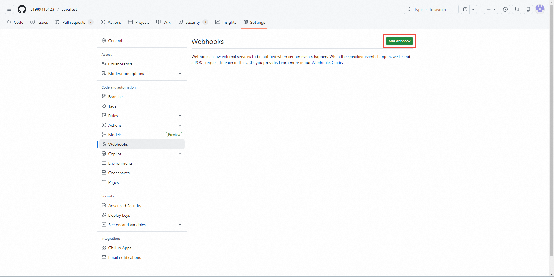 - 参数填写完成后,到页面底部点击【Add webhook】