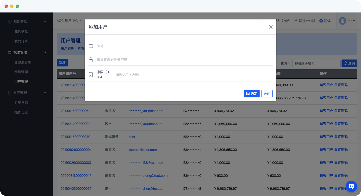 管理员可通过此功能直接为平台添加新用户,并配置初始用户信息,方便新用户快速接入系统。