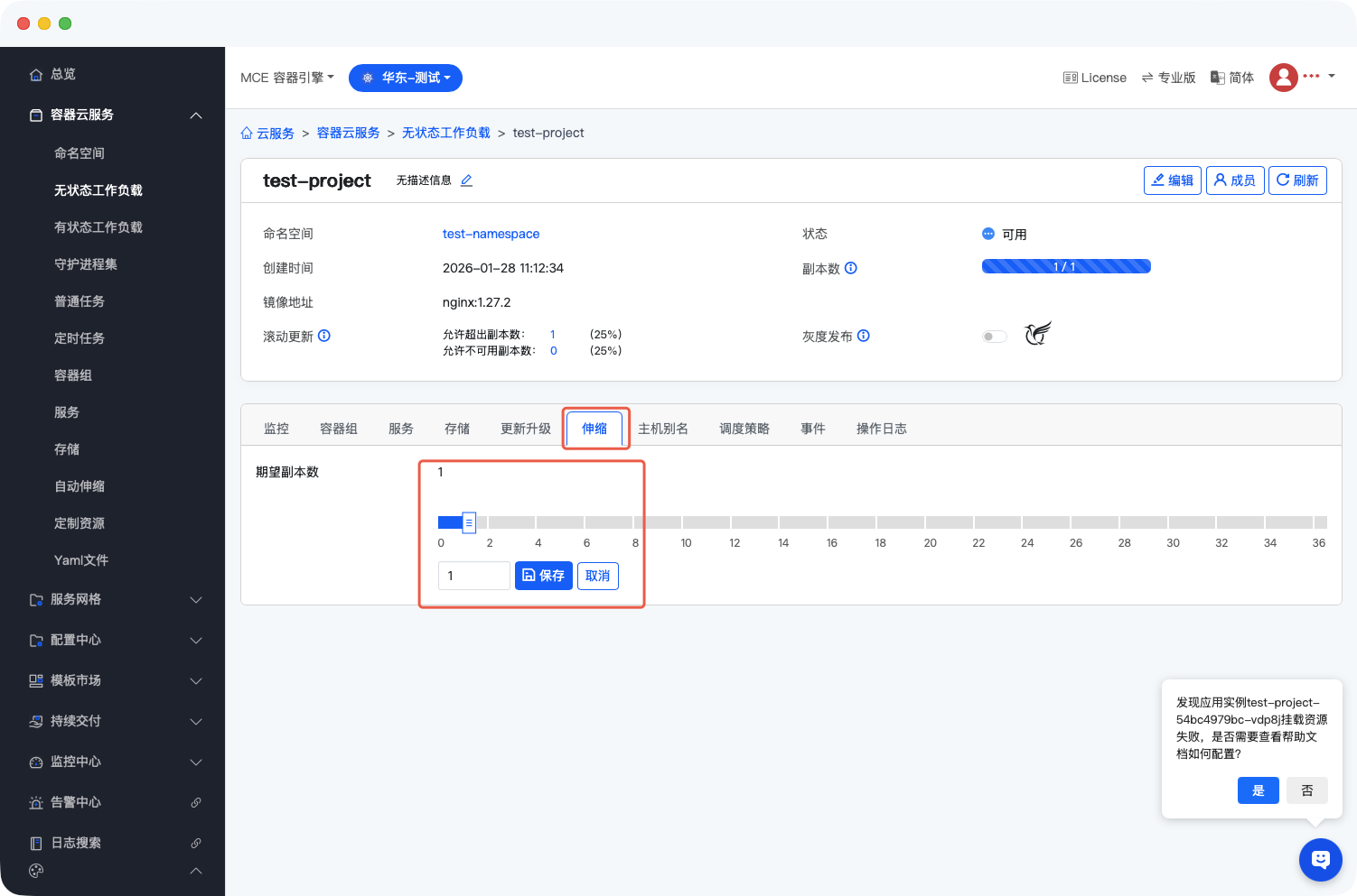 - 待实例数变为0后,再将实例数扩容至1个(单个容器组挂载非共享存储,避免冲突);