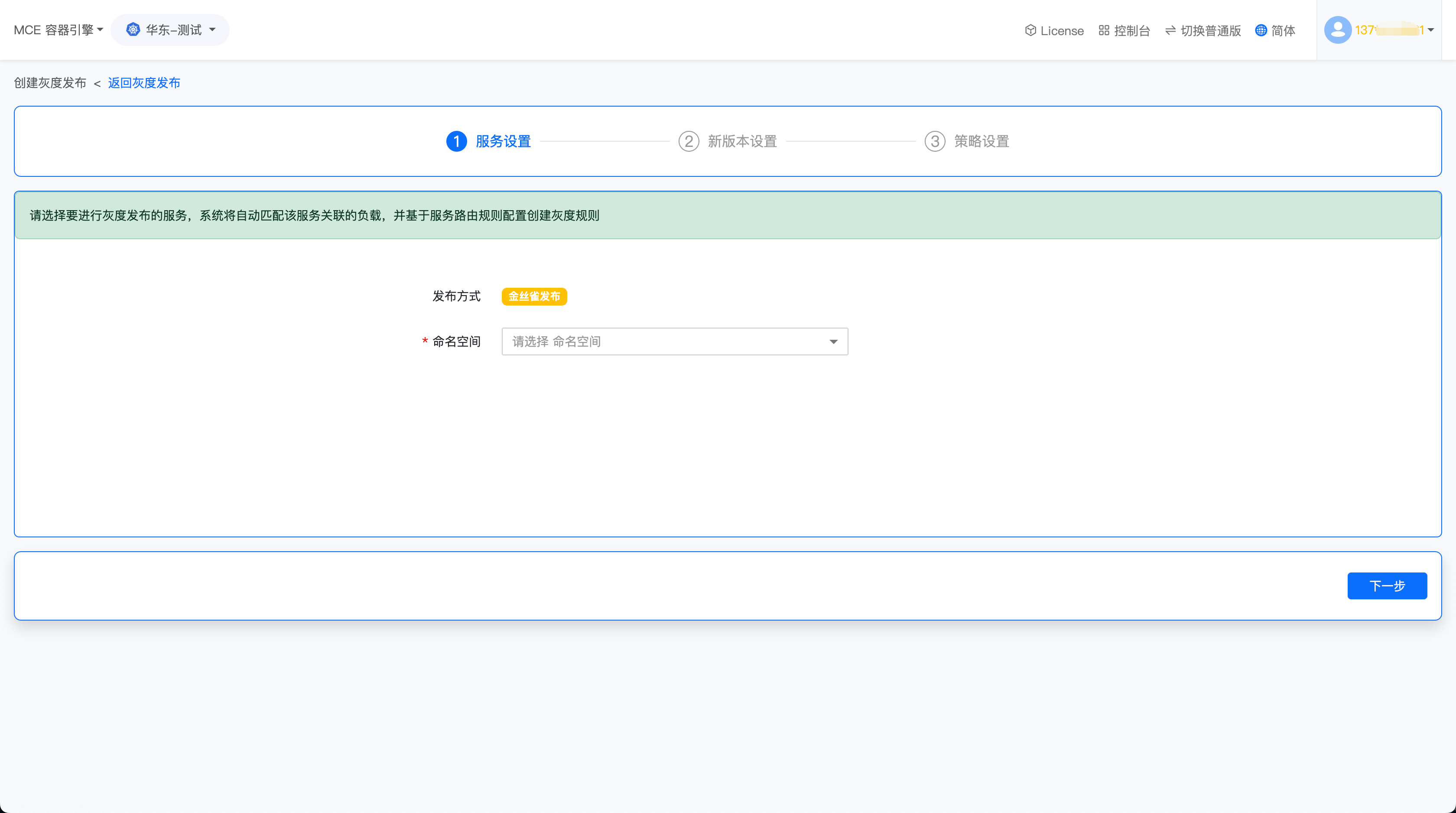 选择金丝雀发布进入创建页面后,按以下要求完成配置:
