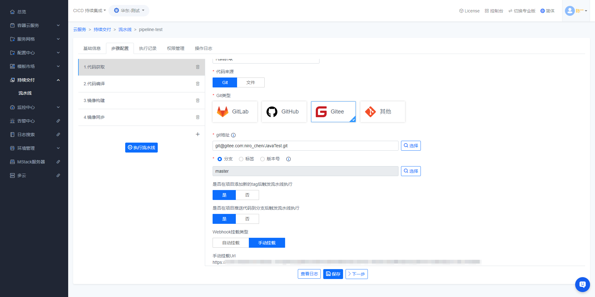 - GitLab、GitHub、Gitee在代码源绑定后可以使用webhook功能