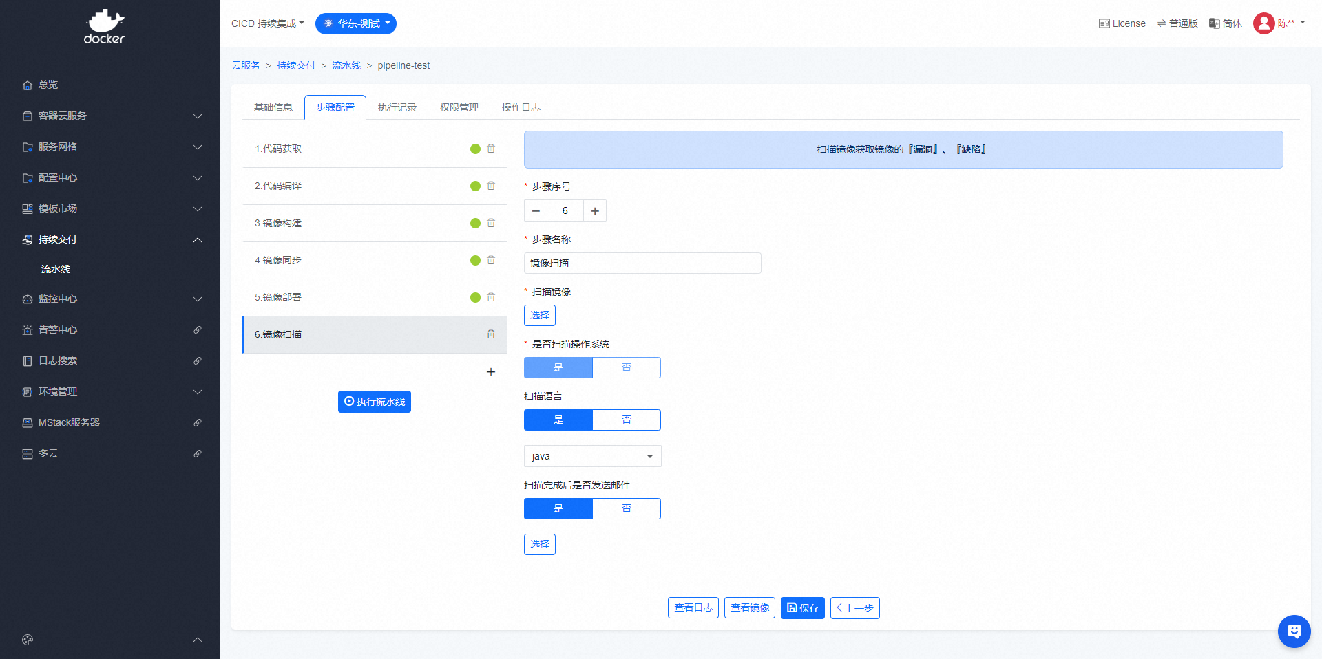暂无相关搜索结果! 操作手册产品介绍什么是云容器引擎前言概述产品优势应用场景约束与限制计费说明权限管理基本概念快速入门如何运行一个Java应用如何运行一个NodeJS应用如何运行一个自定义应用容器云服务资源池创建扩容成员删除克隆无状态应用创建应用查看详情升级镜像挂载存储故障排查常见问题有状态应用守护进程普通任务定时任务工作负载-公共操作监控查询容器组存储更新升级镜像升级资源生命周期健康检查环境变量挂载主机别名容器组服务服务创建编辑编辑YAML删除负载均衡创建查看配置配置ssl自定义配置全局配置故障排查网络策略创建配置白名单删除存储创建编辑YAML定制资源YAML服务网格灰度发布蓝绿部署金丝雀发布流量镜像自制应用创建应用规则配置匹配规则重写重定向直接响应路由分配镜像流量超时重试故障注入配置中心配置创建变更密钥创建变更模板市场镜像创建镜像上传镜像镜像详情编译镜像代码来源Git代码源代码源绑定如何获取GitLab私有 token?GitLab站点地址绑定GitLab绑定GitHub绑定Gitee文件代码源文件目录编译环境java编译环境pom.xml路径编译包路径nodejs编译环境package.json路径非静态文件静态文件静态文件目录镜像构建添加文件到镜像镜像版本号如何将git项目里的某个文件或目录添加到镜像中dockerfile简单说明JarTomcatJettyNodejsNginxnginx.conf默认配置conf.d目录下的默认配置文件自定义镜像基础镜像仓库镜像同步修改镜像全名镜像保留个数镜像规则镜像锁定规则镜像同步规则镜像安全规则影响范围匹配规则转换为流水线镜像版本锁定/解锁镜像同步镜像编译记录同步记录镜像扫描编译镜像示例java镜像示例nodejs镜像示例nginx镜像示例自定义镜像示例镜像编译失败处理方法编译日志异常相关connect ETIMEDOUTnetwork Socket timeoutunauthorized: authentication requiredCannot find module 'chalk'镜像仓库官方模板简介安装模板管理实例使用示例zookeeper安装更新运维kafka安装更新运维mysql安装更新运维harbor导入系统插件自定义模板软件中心软件包管理镜像依赖配置创建镜像依赖配置显示名称持续交付流水线创建流水线配置流水线代码获取Git代码源GitLab挂载webhookGitHub挂载webhookGitee挂载webhook文件代码源代码编译镜像构建JarTomcatJettyNodejsNginx自定义镜像镜像同步镜像部署镜像扫描kvm交互自定义流水线示例编译并部署一个java镜像编译并部署一个nodejs-nginx镜像编译一个自定义镜像编译一个多代码源镜像日志检索日志插件日志检索日志安装配置集群管理接管集群集群管理区域化部署应用模板权限管理账户中心配置超级管理员超级管理员管理用户超级管理员如何新增用户超级管理员如何销毁用户超级管理员如何重置用户密码配置注册验证码开关组织管理简介创建组织成员管理添加组织成员移除组织成员修改组织成员权限权限管理常见问题如何根据实例IP查询实例信息项目Debug模式云平台如何配置coredns项目不断重启如何排查项目无法部署到主机如何解决项目无法拉取镜像如何排查项目存储挂载报错如何解决项目存储已被挂载如何解决部署教程基础环境安装X86架构部署arm64鲲鹏麒麟v10-sp3部署NFS存储安装容器云平台安装平台组件版本视频帮助集群类接管环境分配集群权限应用模板设置应用部署区域资源池创建资源池扩容资源池分配资源池权限项目类部署JAVA应用部署自定义应用挂载配置文件挂载持久化存储容器中下载文件如何进入调式模式镜像类上传镜像自定义模板新增编译JDK版本更新动态版本发布说明3.x版本说明2.x版本说明1.x版本说明基础镜像版本升级说明性能测试服务快速入门JMeter压测快速入门OpenAPI快速入门在线调试OpenAPI容器接口在线调试镜像接口在线调试开发指南构造请求认证方式返回结果附录状态码 镜像扫描 修改时间: 2026-03-11T18:45:10+08:00 阅读次数:785 分享 下载 PDF Word Markdown 简介参数扫描镜像是否扫描操作系统扫描语言扫描完成后发送邮件简介 镜像扫描支持主动发现镜像的底层组件及镜像中的应用的安全漏洞参数扫描镜像 需要扫描的镜像,仅支持【镜像同步】步骤的镜像是否扫描操作系统 默认为[是]无法更改扫描语言 扫描镜像中的应用,支持【java】,【golang】,【python】扫描完成后发送邮件 扫描完成后发送邮件,支持发送多人作者:陈晓东 创建时间:2021-04-16 17:55最后编辑:陈晓东 更新时间:2026-03-04 17:23
