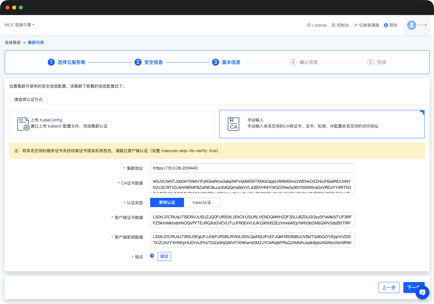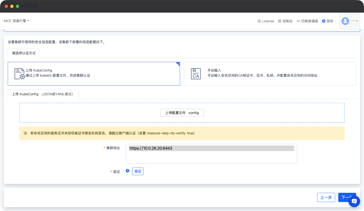 | 环境 API 地址 | 连接 Kubernetes 环境接口调用的地址。 |