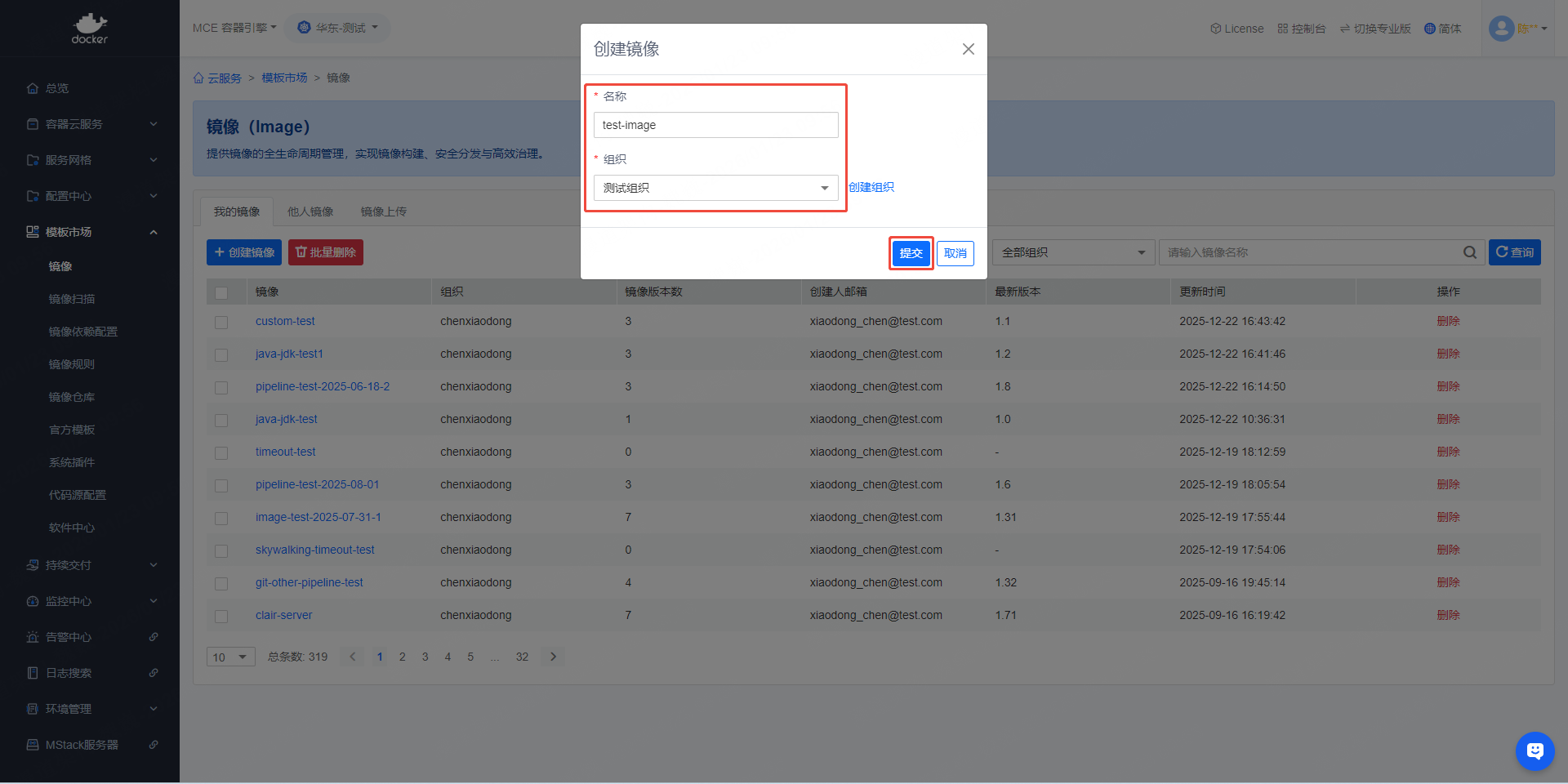 - 组织:镜像所属的组织,若没有则需要先创建组织