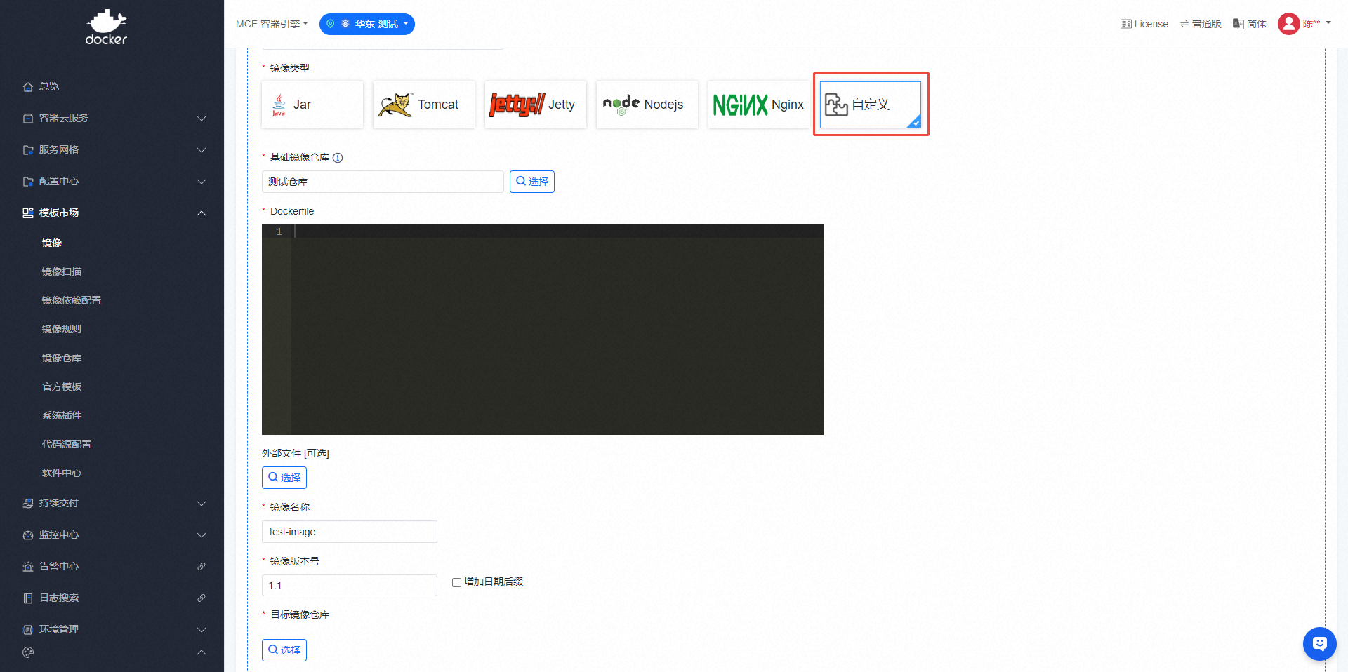 暂无相关搜索结果! 操作手册产品介绍什么是云容器引擎前言概述产品优势应用场景约束与限制计费说明权限管理基本概念快速入门如何运行一个Java应用如何运行一个NodeJS应用如何运行一个自定义应用容器云服务资源池创建扩容成员删除克隆无状态应用创建应用查看详情升级镜像挂载存储故障排查常见问题有状态应用守护进程普通任务定时任务工作负载-公共操作监控查询容器组存储更新升级镜像升级资源生命周期健康检查环境变量挂载主机别名容器组服务服务创建编辑编辑YAML删除负载均衡创建查看配置配置ssl自定义配置全局配置故障排查网络策略创建配置白名单删除存储创建编辑YAML定制资源YAML服务网格灰度发布蓝绿部署金丝雀发布流量镜像自制应用创建应用规则配置匹配规则重写重定向直接响应路由分配镜像流量超时重试故障注入配置中心配置创建变更密钥创建变更模板市场镜像创建镜像上传镜像镜像详情编译镜像代码来源Git代码源代码源绑定如何获取GitLab私有 token?GitLab站点地址绑定GitLab绑定GitHub绑定Gitee文件代码源文件目录编译环境java编译环境pom.xml路径编译包路径nodejs编译环境package.json路径非静态文件静态文件静态文件目录镜像构建添加文件到镜像镜像版本号如何将git项目里的某个文件或目录添加到镜像中dockerfile简单说明JarTomcatJettyNodejsNginxnginx.conf默认配置conf.d目录下的默认配置文件自定义镜像基础镜像仓库镜像同步修改镜像全名镜像保留个数镜像规则镜像锁定规则镜像同步规则镜像安全规则影响范围匹配规则转换为流水线镜像版本锁定/解锁镜像同步镜像编译记录同步记录镜像扫描编译镜像示例java镜像示例nodejs镜像示例nginx镜像示例自定义镜像示例镜像编译失败处理方法编译日志异常相关connect ETIMEDOUTnetwork Socket timeoutunauthorized: authentication requiredCannot find module 'chalk'镜像仓库官方模板简介安装模板管理实例使用示例zookeeper安装更新运维kafka安装更新运维mysql安装更新运维harbor导入系统插件自定义模板软件中心软件包管理镜像依赖配置创建镜像依赖配置显示名称持续交付流水线创建流水线配置流水线代码获取Git代码源GitLab挂载webhookGitHub挂载webhookGitee挂载webhook文件代码源代码编译镜像构建JarTomcatJettyNodejsNginx自定义镜像镜像同步镜像部署镜像扫描kvm交互自定义流水线示例编译并部署一个java镜像编译并部署一个nodejs-nginx镜像编译一个自定义镜像编译一个多代码源镜像日志检索日志插件日志检索日志安装配置集群管理接管集群集群管理区域化部署应用模板权限管理账户中心配置超级管理员超级管理员管理用户超级管理员如何新增用户超级管理员如何销毁用户超级管理员如何重置用户密码配置注册验证码开关组织管理简介创建组织成员管理添加组织成员移除组织成员修改组织成员权限权限管理常见问题如何根据实例IP查询实例信息项目Debug模式云平台如何配置coredns项目不断重启如何排查项目无法部署到主机如何解决项目无法拉取镜像如何排查项目存储挂载报错如何解决项目存储已被挂载如何解决部署教程基础环境安装X86架构部署arm64鲲鹏麒麟v10-sp3部署NFS存储安装容器云平台安装平台组件版本视频帮助集群类接管环境分配集群权限应用模板设置应用部署区域资源池创建资源池扩容资源池分配资源池权限项目类部署JAVA应用部署自定义应用挂载配置文件挂载持久化存储容器中下载文件如何进入调式模式镜像类上传镜像自定义模板新增编译JDK版本更新动态版本发布说明3.x版本说明2.x版本说明1.x版本说明基础镜像版本升级说明性能测试服务快速入门JMeter压测快速入门OpenAPI快速入门在线调试OpenAPI容器接口在线调试镜像接口在线调试开发指南构造请求认证方式返回结果附录状态码 自定义镜像 修改时间: 2026-03-02T16:09:27+08:00 阅读次数:39 分享 下载 PDF Word Markdown 简介简介 【镜像类型】选择【自定义】,用户可根据需求自行编写Dockerfile作者:陈晓东 创建时间:2026-02-04 16:41最后编辑:陈晓东 更新时间:2026-03-02 15:35