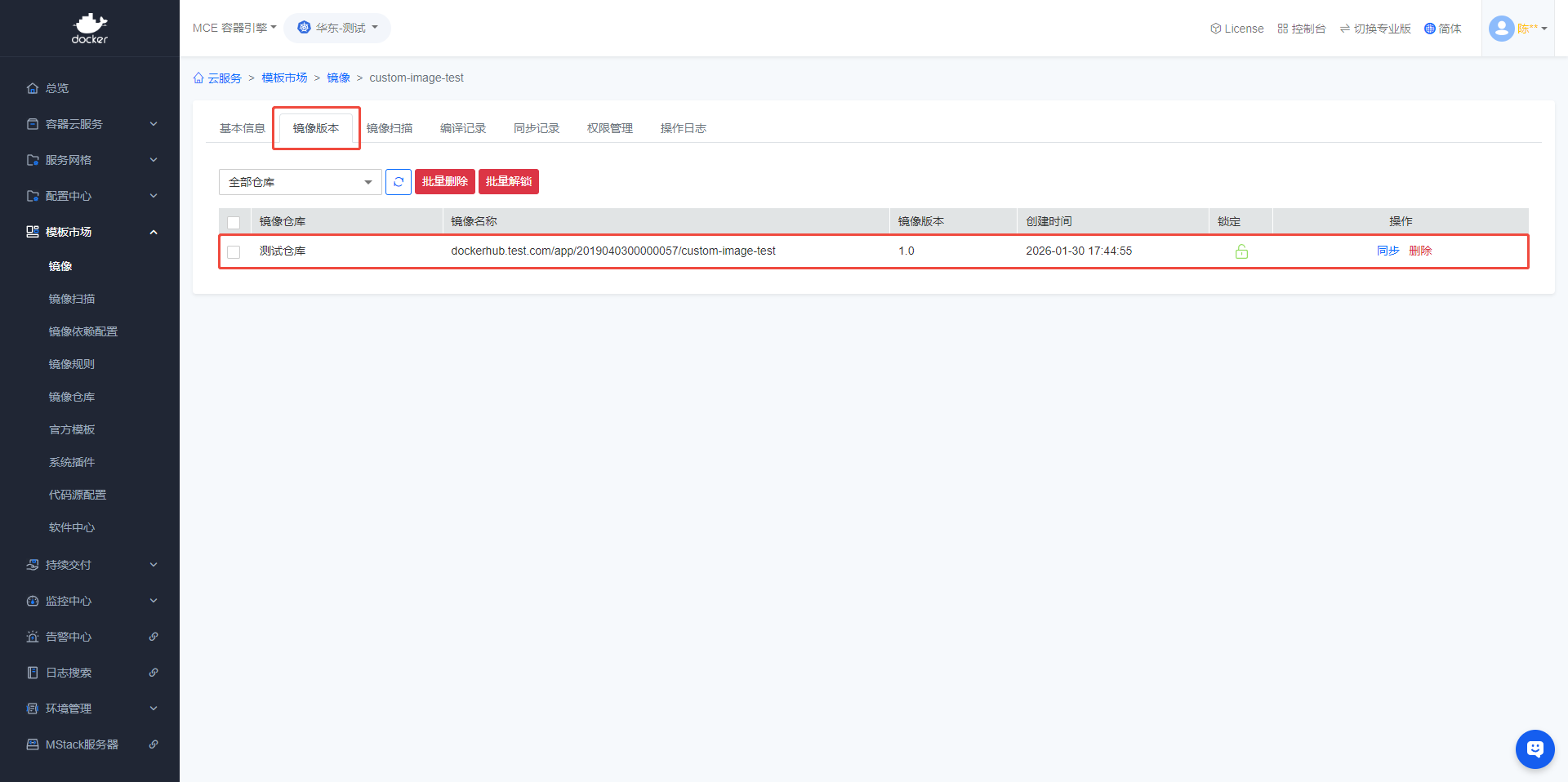 - 在【镜像版本】中可以看到编译完成的镜像版本信息