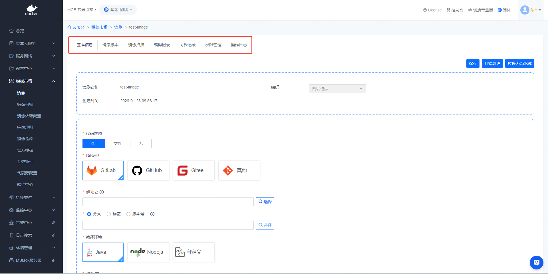 暂无相关搜索结果! 操作手册产品介绍什么是云容器引擎前言概述产品优势应用场景约束与限制计费说明权限管理基本概念快速入门如何运行一个Java应用如何运行一个NodeJS应用如何运行一个自定义应用容器云服务资源池创建扩容成员删除克隆无状态应用创建应用查看详情升级镜像挂载存储故障排查常见问题有状态应用守护进程普通任务定时任务工作负载-公共操作监控查询容器组存储更新升级镜像升级资源生命周期健康检查环境变量挂载主机别名容器组服务服务创建编辑编辑YAML删除负载均衡创建查看配置配置ssl自定义配置全局配置故障排查网络策略创建配置白名单删除存储创建编辑YAML定制资源YAML服务网格灰度发布蓝绿部署金丝雀发布流量镜像自制应用创建应用规则配置匹配规则重写重定向直接响应路由分配镜像流量超时重试故障注入配置中心配置创建变更密钥创建变更模板市场镜像创建镜像镜像详情编译镜像代码来源Git代码源代码源绑定如何获取GitLab私有 token?GitLab站点地址绑定GitLab绑定GitHub绑定Gitee文件代码源文件目录编译环境java编译环境pom.xml路径编译包路径nodejs编译环境package.json路径非静态文件静态文件静态文件目录镜像构建conf.d目录下的默认配置文件nginx.conf默认配置添加文件到镜像镜像版本号如何将git项目里的某个文件或目录添加到镜像中dockerfile简单说明镜像类型关联参数镜像类型与编译环境的关系目标镜像仓库修改镜像全名镜像保留个数镜像规则镜像锁定规则镜像同步规则镜像安全规则影响范围匹配规则转换为流水线镜像版本锁定/解锁镜像同步镜像编译记录同步记录镜像扫描编译镜像示例java镜像示例nodejs镜像示例nginx镜像示例自定义镜像示例如何增加maven版本镜像编译失败处理方法编译日志异常相关connect ETIMEDOUTnetwork Socket timeoutunauthorized: authentication requiredCannot find module 'chalk'镜像仓库创建镜像仓库官方模板简介安装模板管理实例使用示例zookeeper安装更新运维kafka安装更新运维mysql安装更新运维harbor导入系统插件自定义模板软件中心简介软件包管理镜像依赖配置创建镜像依赖配置配置名称解压后的文件名jdk镜像推送仓库jdk镜像名称持续交付流水线创建流水线配置流水线代码获取Git代码源配置说明Webhook使用说明GitLab挂载webhook查看是否拥有webhook权限GitLab设置允许接收webhook请求GitHub挂载webhookGitee挂载webhook文件代码源配置说明代码编译Java编译环境Nodejs编译环境自定义编译环境镜像构建Jar镜像Tomcat镜像Jetty镜像Nodejs镜像Nginx镜像自定义镜像基础镜像仓库镜像同步镜像规则镜像规则与流水线关联配置镜像锁定规则创建镜像锁定规则镜像同步规则创建镜像同步规则镜像安全规则配置镜像安全规则镜像部署部署到已有的项目镜像扫描kvm交互自定义如何使用流水线?编译并部署一个java镜像编译并部署一个nodejs镜像编译并部署一个nginx镜像编译一个自定义镜像编译一个多代码源镜像日志检索日志插件日志检索日志安装配置集群管理接管集群集群管理区域化部署应用模板权限管理账户中心配置超级管理员超级管理员管理用户超级管理员如何新增用户超级管理员如何销毁用户超级管理员如何重置用户密码配置注册验证码开关组织管理简介创建组织成员管理添加组织成员移除组织成员修改组织成员权限权限管理常见问题如何根据实例IP查询实例信息项目Debug模式云平台如何配置coredns项目不断重启如何排查项目无法部署到主机如何解决项目无法拉取镜像如何排查项目存储挂载报错如何解决部署教程基础环境安装X86架构部署arm64鲲鹏麒麟v10-sp3部署NFS存储安装容器云平台安装平台组件版本视频帮助集群类接管环境分配集群权限应用模板设置应用部署区域资源池创建资源池扩容资源池分配资源池权限项目类部署JAVA应用部署自定义应用挂载配置文件挂载持久化存储容器中下载文件如何进入调式模式镜像类上传镜像自定义模板新增编译JDK版本更新动态版本发布说明3.x版本说明2.x版本说明1.x版本说明基础镜像版本升级说明性能测试服务快速入门JMeter压测快速入门OpenAPI快速入门在线调试OpenAPI容器接口在线调试镜像接口在线调试开发指南构造请求认证方式返回结果附录状态码 镜像详情 修改时间: 2026-01-30T18:08:26+08:00 阅读次数:880 分享 下载 PDF Word Markdown 镜像详情镜像详情 登录系统后,顶部选择【MCE容器引擎】左侧导航栏依次点击【模板市场】->【镜像】右侧列表页点击【镜像名称】即可进入镜像详情 镜像详情中包含【基本信息】,【镜像版本】,【镜像扫描】,【编译记录】等功能作者:吴升斌 创建时间:2019-09-16 13:28最后编辑:陈晓东 更新时间:2026-01-30 18:08