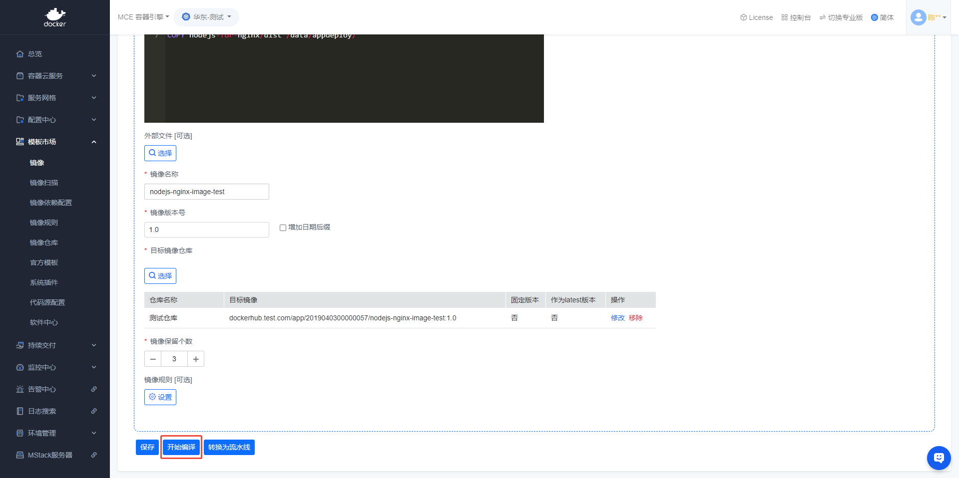 - 【基础镜像仓库】使用默认即可,如果没有那么需先配置【镜像仓库】,配置方法参考:创建镜像仓库