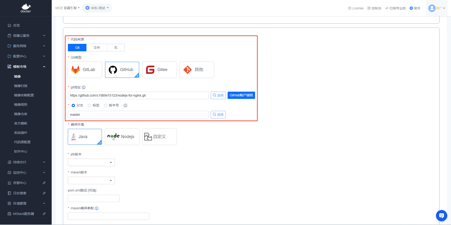 - 【git地址】填写:https://github.com/c1989415123/nodejs-for-nginx.git