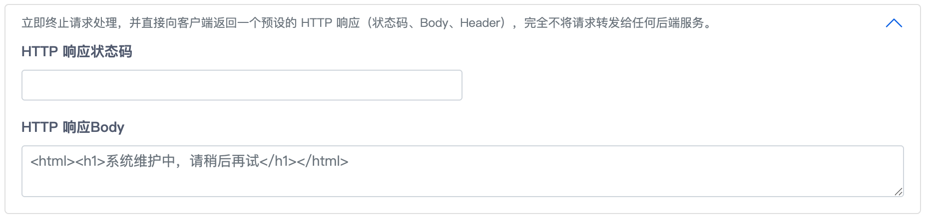 # 直接响应场景下无需配置route字段4.2 降级兜底示例