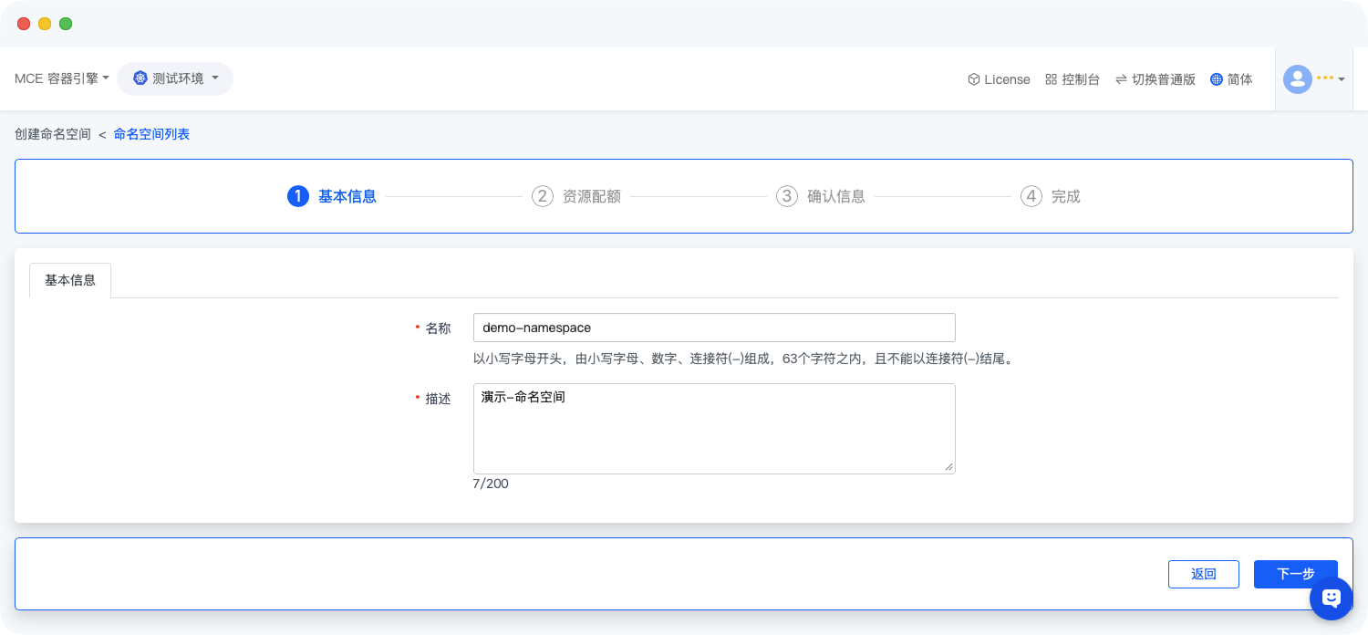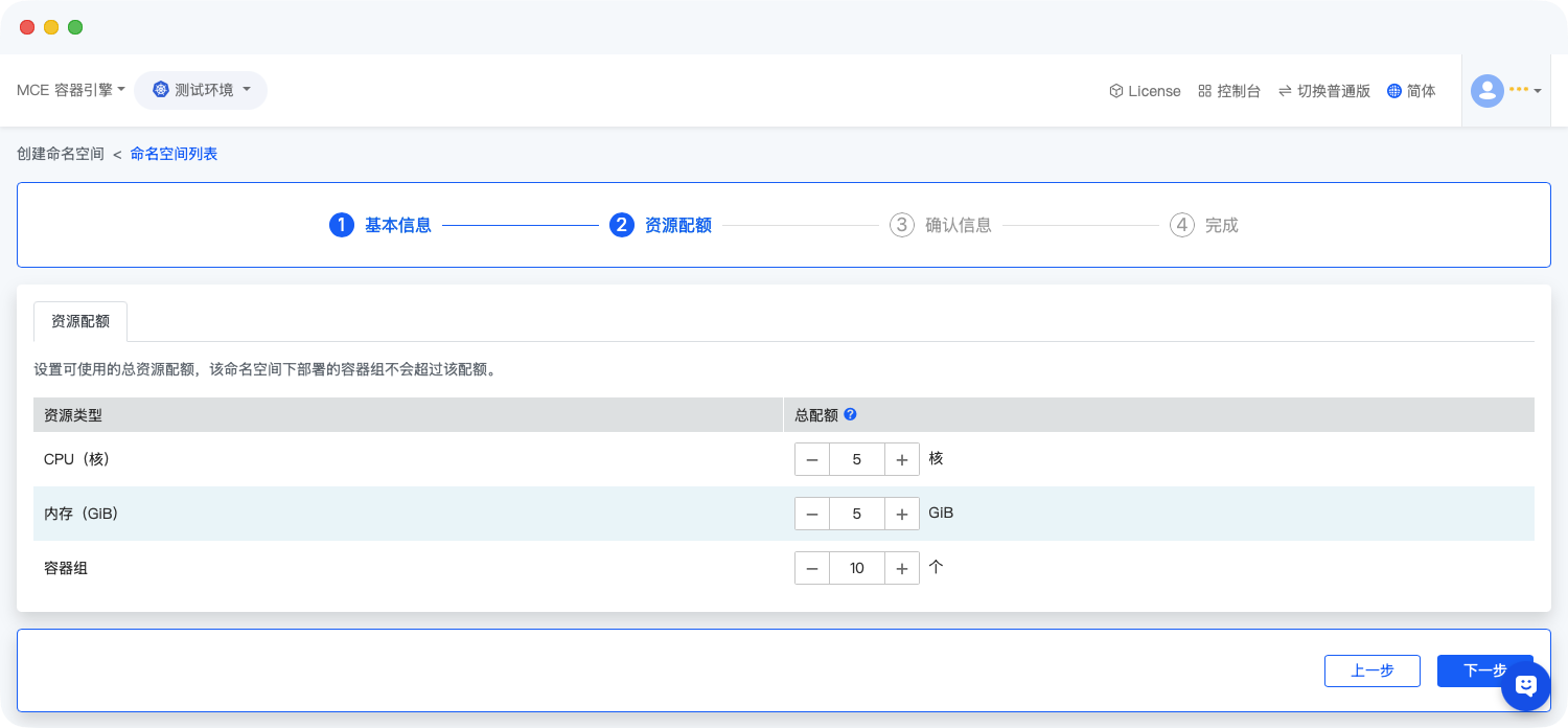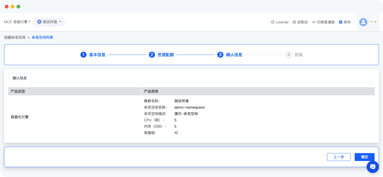 完成基础信息和资源配额配置后,进入确认页面,核对信息准确性,页面展示如下: