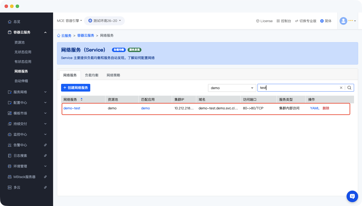 - 基础资源:「my-space」空间下已存在名为「demo-project」的无状态工作负载(服务需关联该工作负载,确保后续访问正常)。