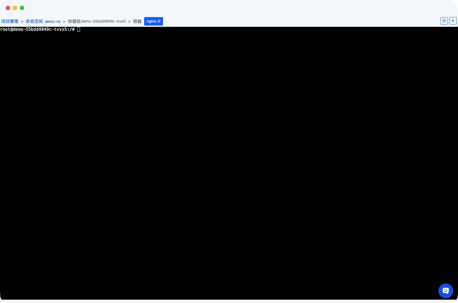 - 命令行:进入容器组的命令行界面,执行相关命令调试;