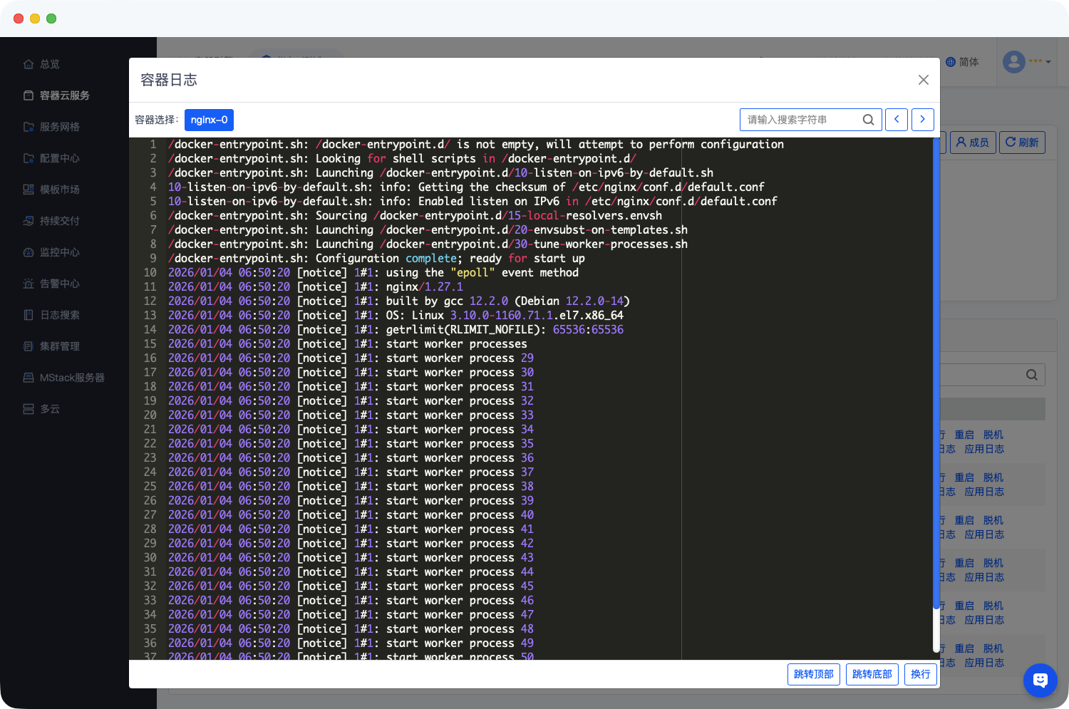 - 容器日志:查看容器运行过程中的日志信息,用于故障排查;