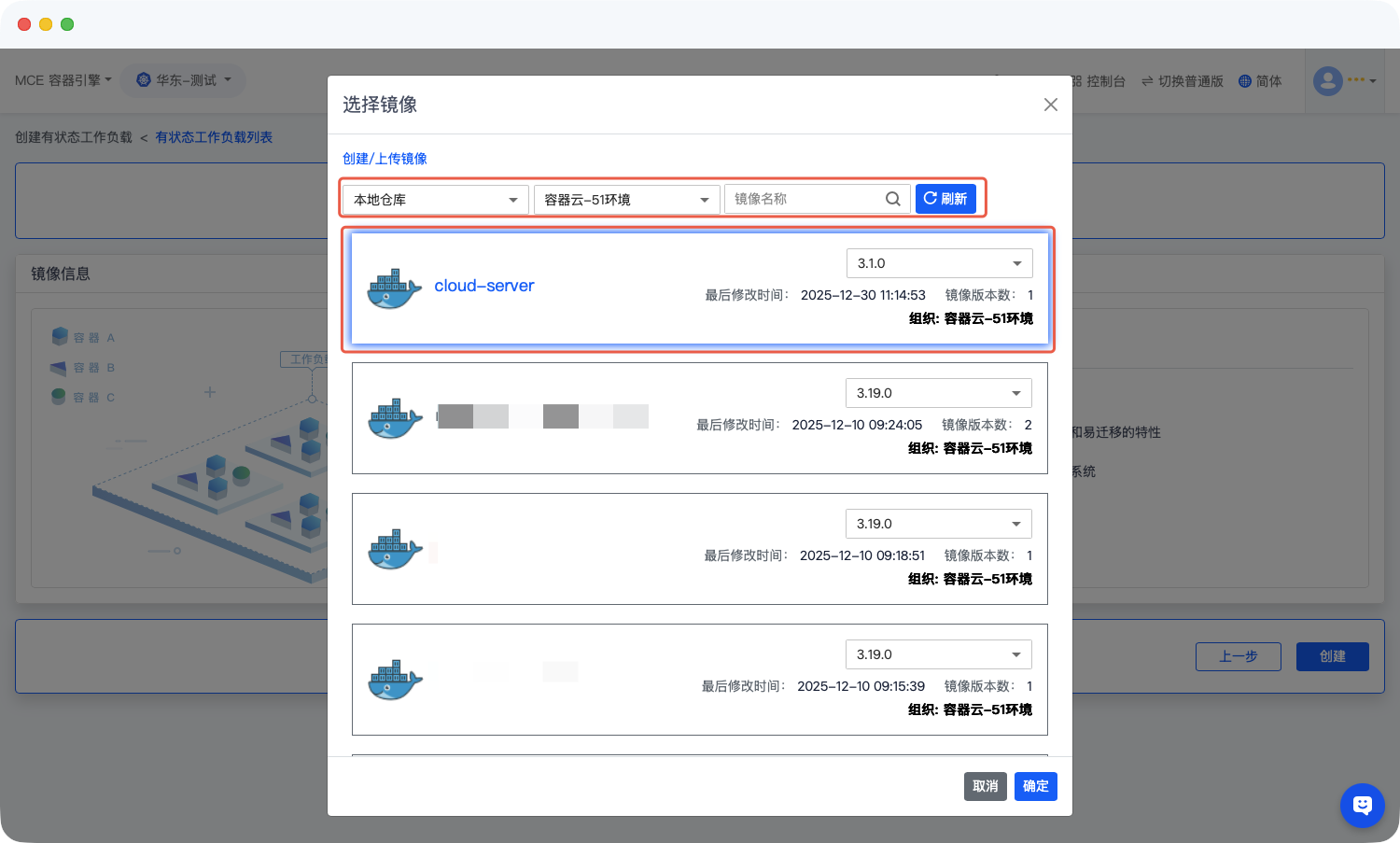 - 选择镜像:在选定组织下,找到需要用于部署有状态应用的具体镜像。