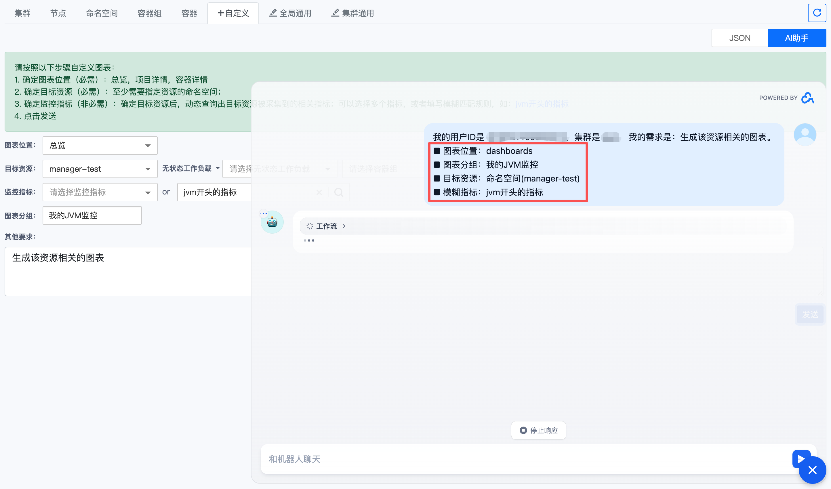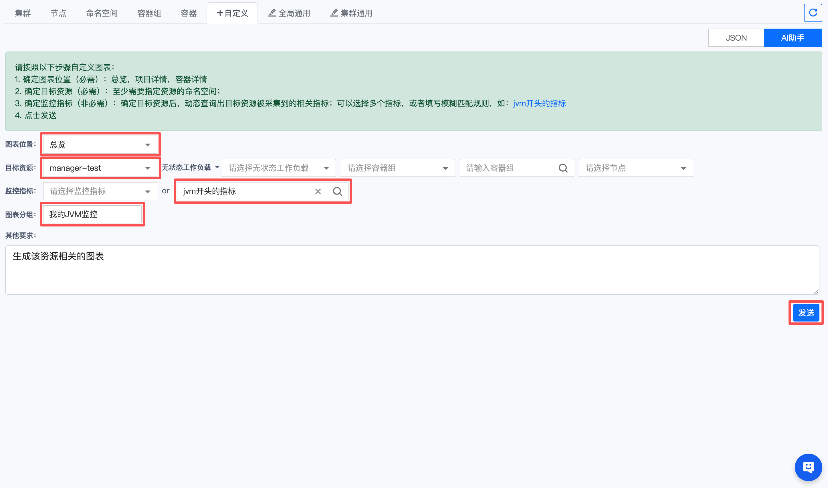 点击【发送】将已选择的参数信息提交给 AI 助手,系统将自动为您: