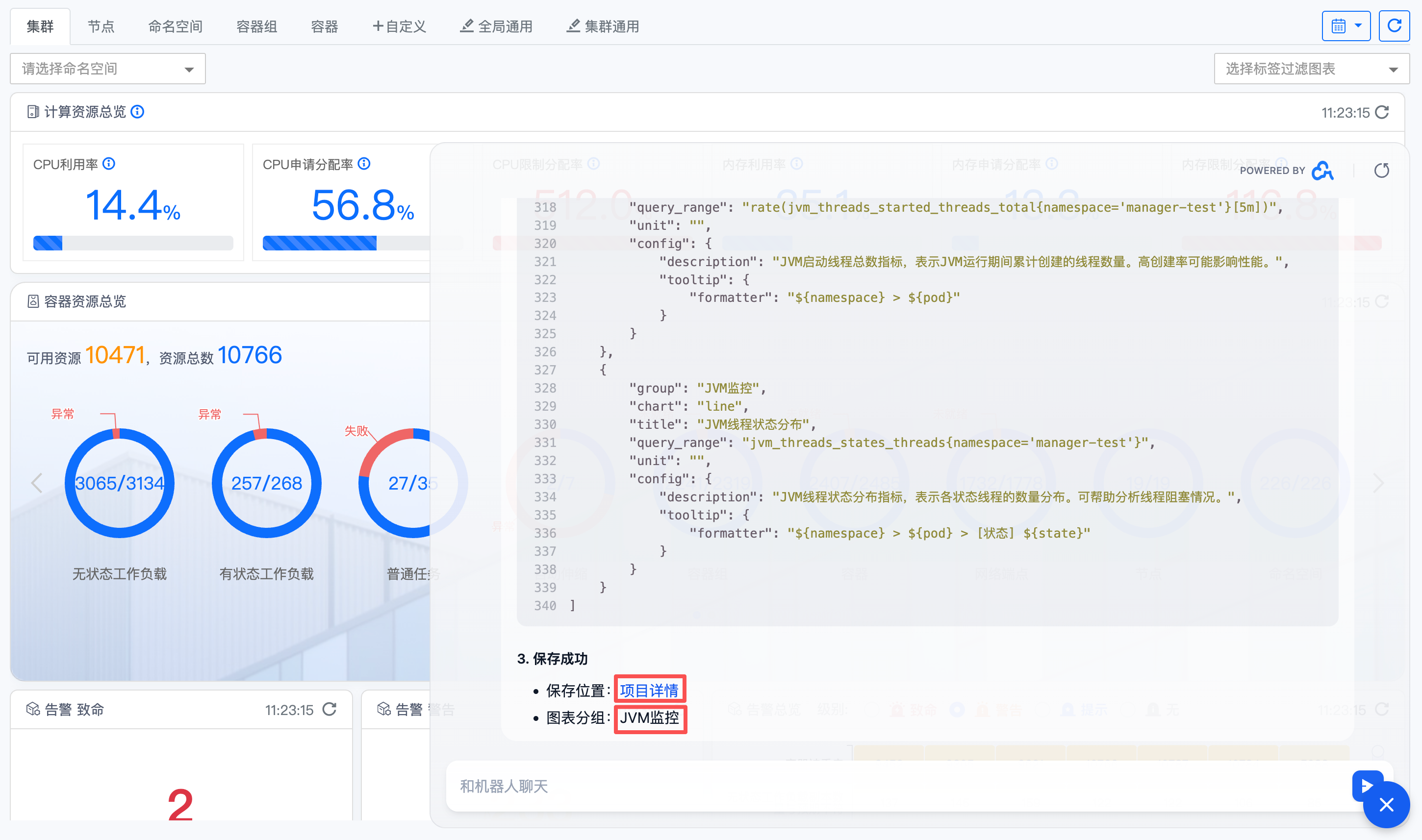 选择需要监控的目标资源,通常指定一个命名空间
