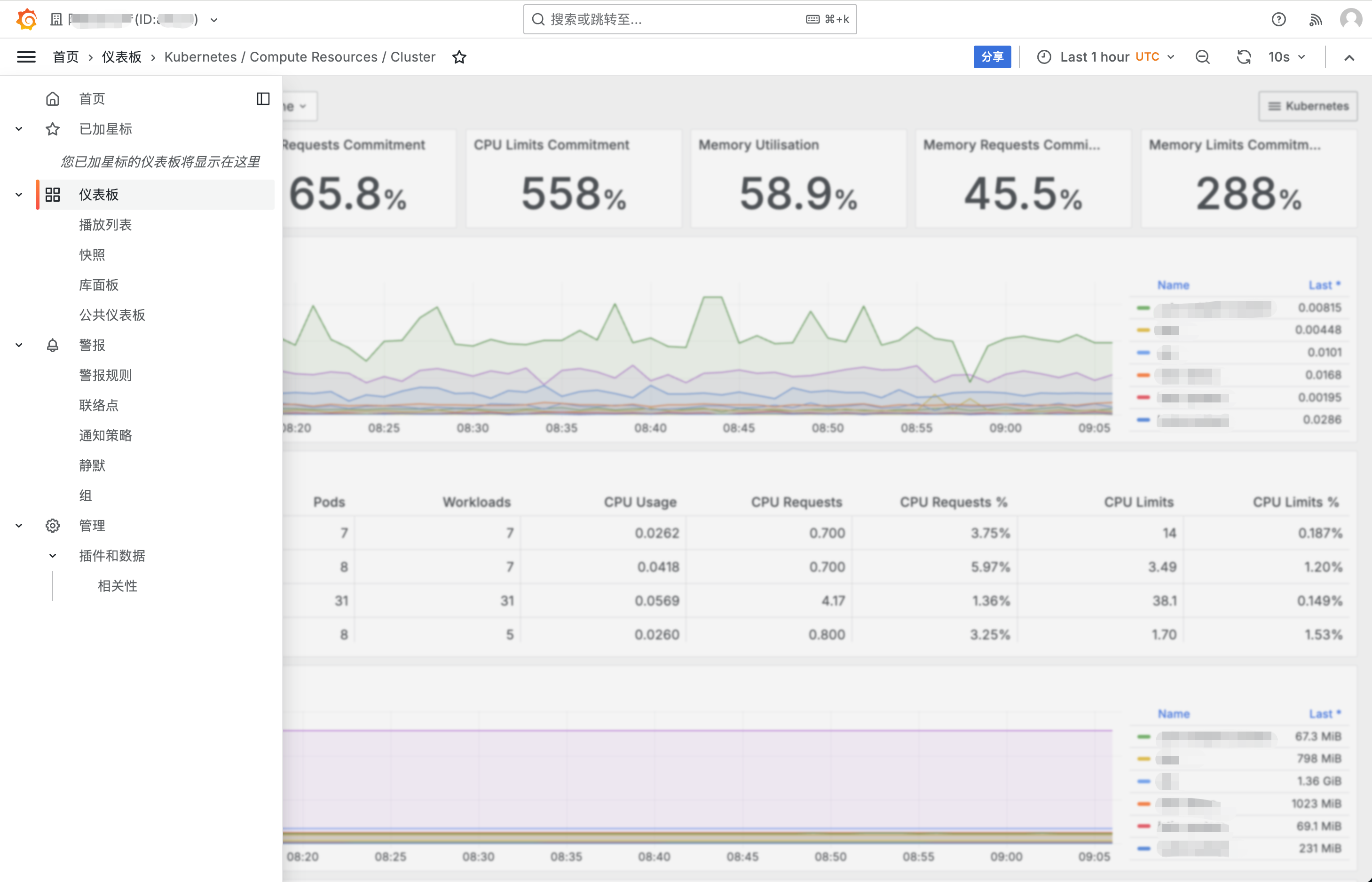 中心会自动识别集群类型,为该组织创建一套预设的集群监控大盘。无需用户手动配置,就可以拥有一套完整的集群系统监控大盘。