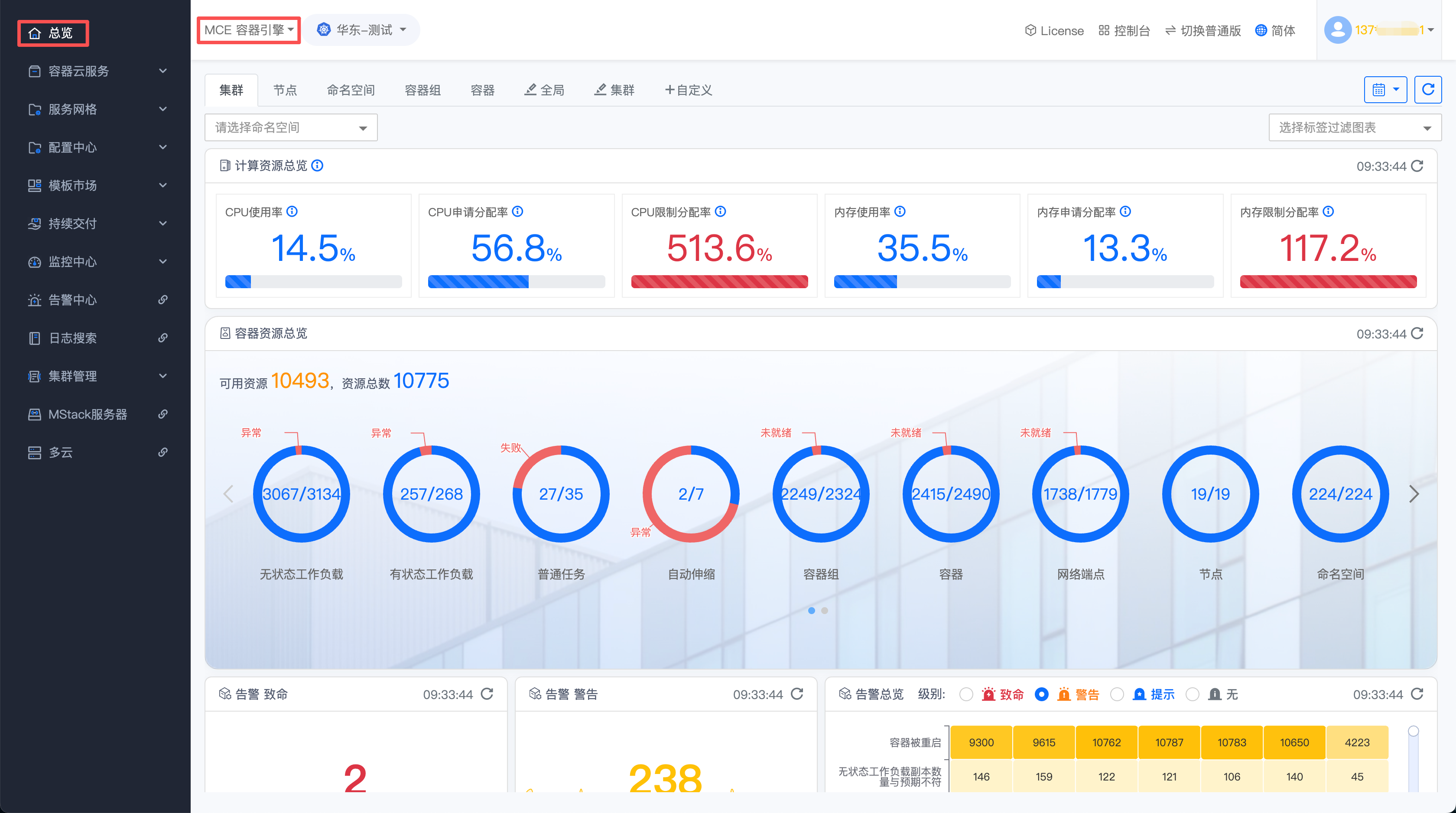 - 登录云平台,切换模块至【MCE 容器引擎】;
