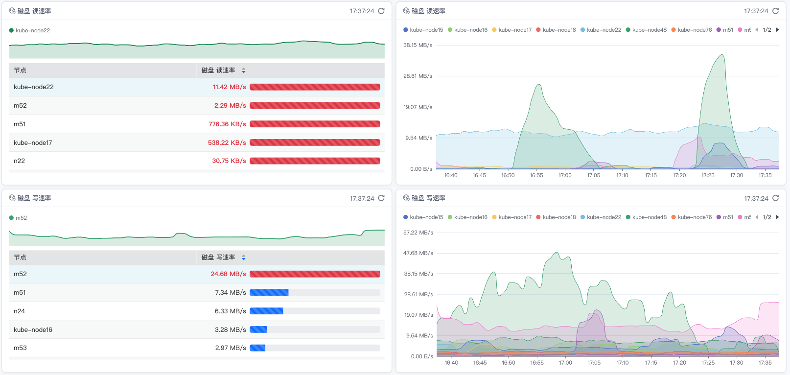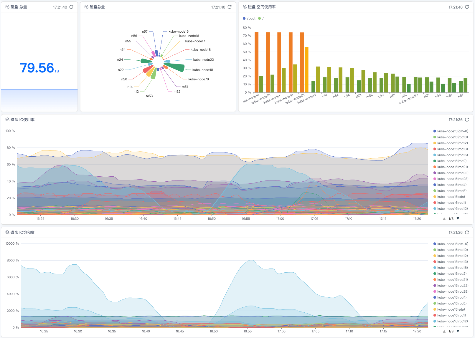 磁盘存储着系统核心数据和应用文件,其空间和性能直接关系到业务连续性和数据安全。本部分提供磁盘容量使用率和I/O性能双重监控,帮助您及时预警存储空间不足风险,并评估磁盘读写能力。