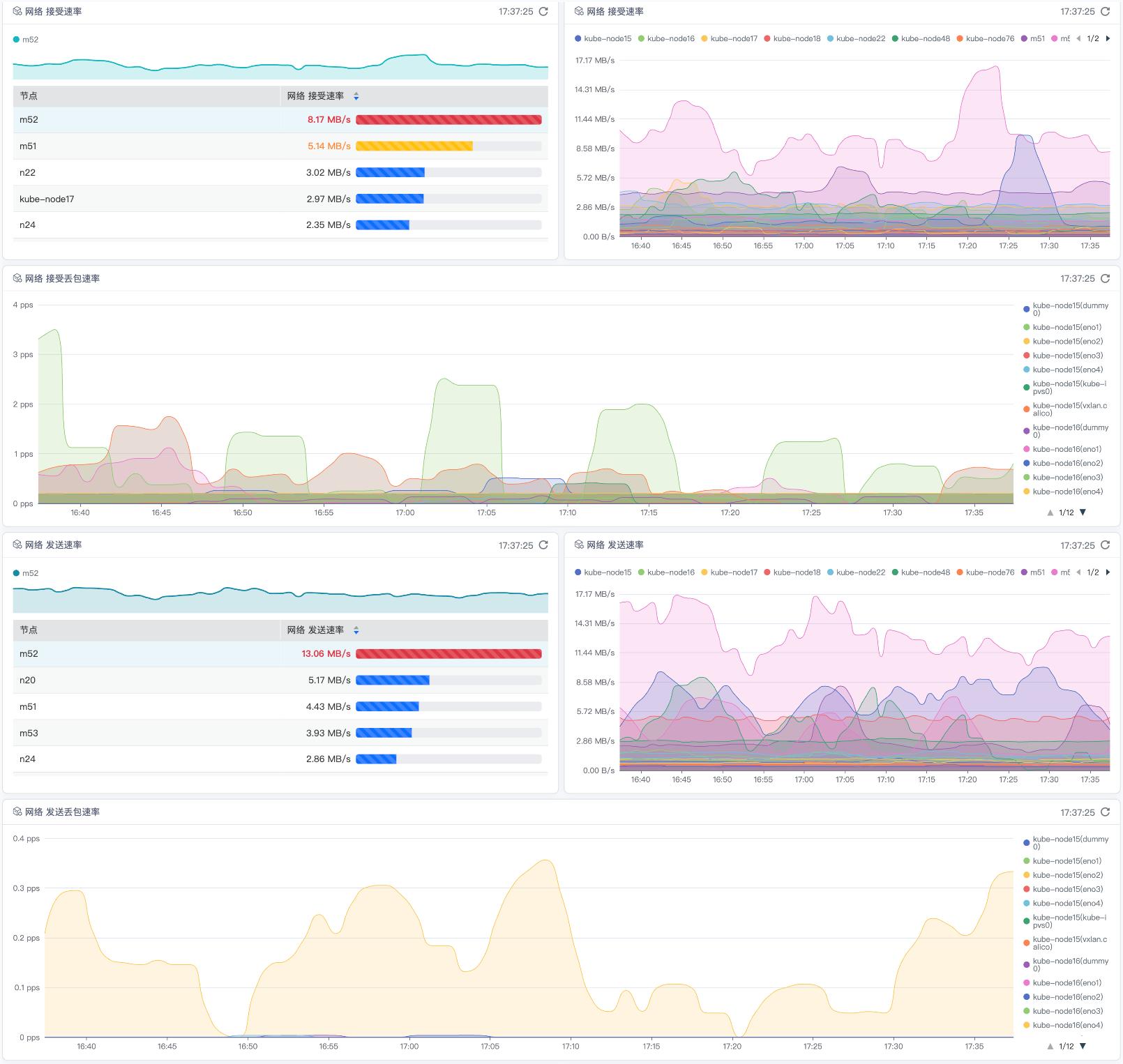网络是系统对外服务的通信命脉,直接影响用户体验和业务可达性。本部分监控网络带宽使用、连接状态和流量趋势,帮助您掌握系统的网络负载情况和通信质量。
