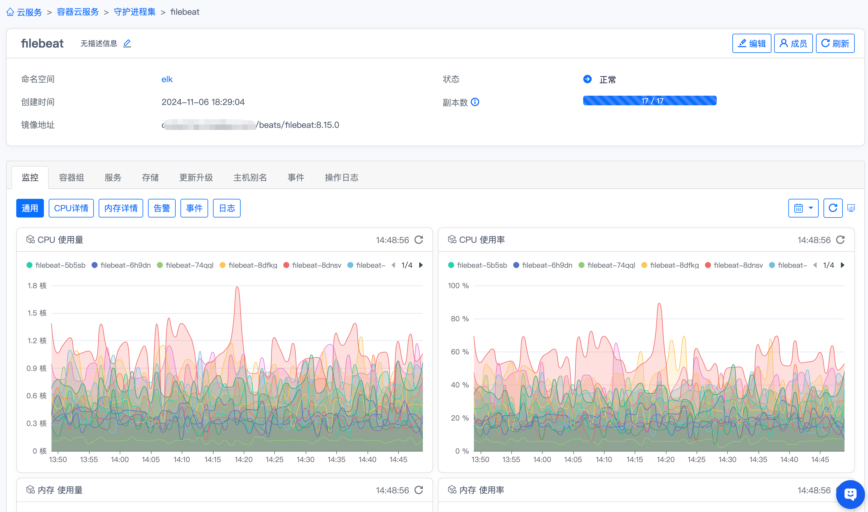 - 在切换的面板中,即可查看【容器组维度】的监控。