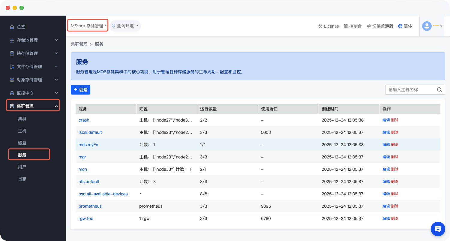 - 在集群详情页面中,定位到「服务」菜单,点击进入服务管理列表。