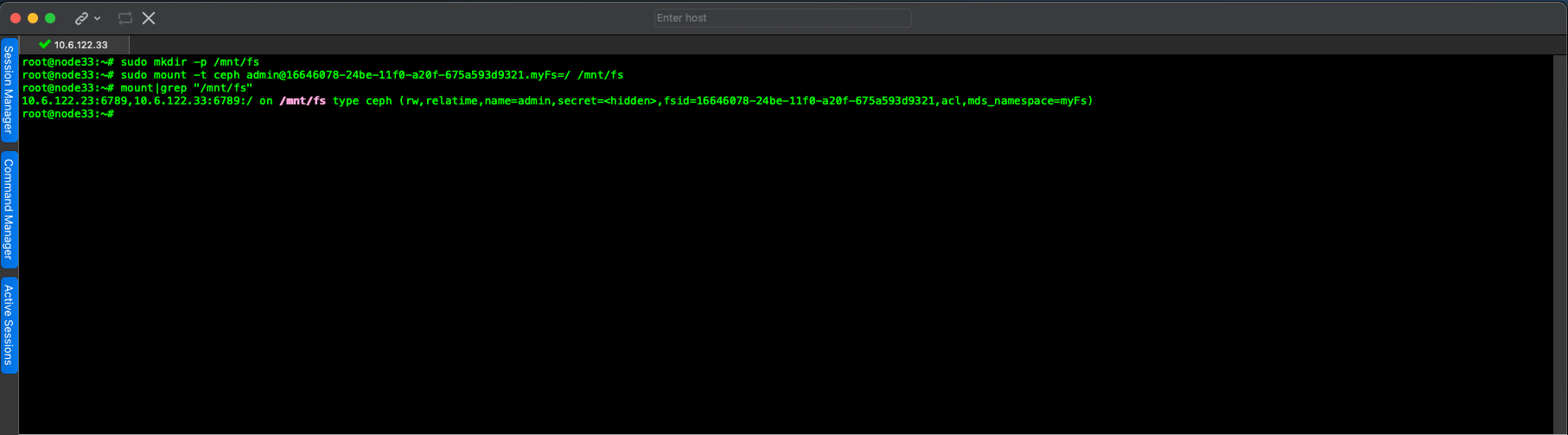 # 创建目录 sudo mkdir -p /mnt/fs # 挂载 sudo mount -t ceph admin@16646078-24be-11f0-a20f-675a593d9321.myFs=/ /mnt/fs*客户端卸载示意图: