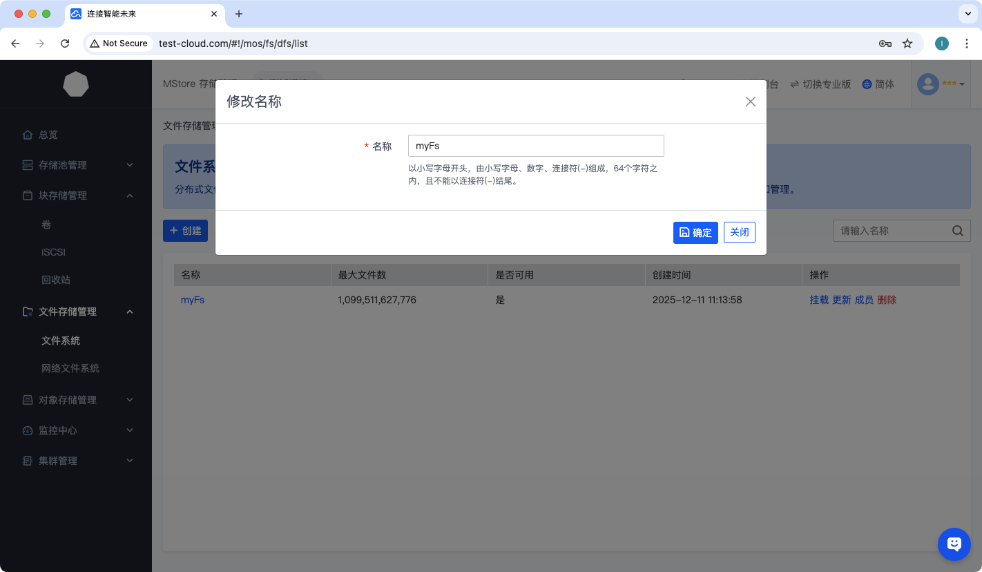 - 注意:名称修改不影响已挂载客户端的访问,但建议通知业务方更新标识记录。