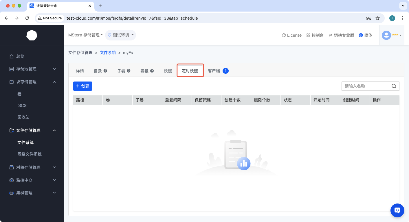 - 在左侧导航栏依次点击【文件存储】→【文件系统】,即可进入列表页面。