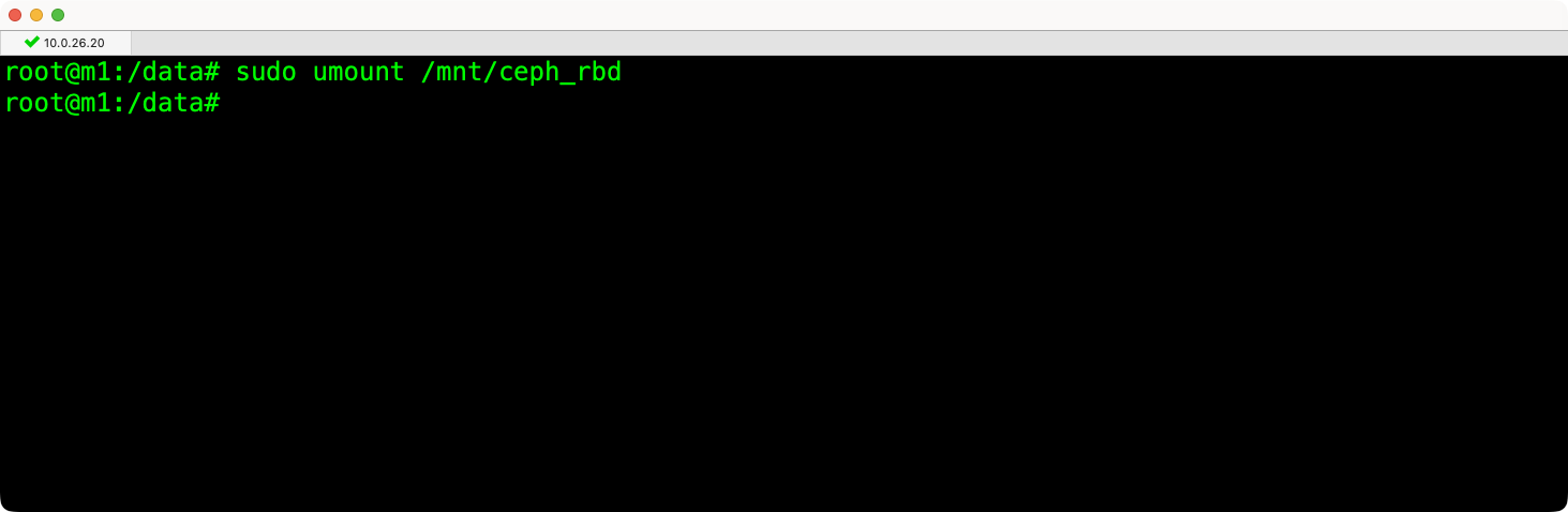 使用umount命令卸载已挂载的 RBD 块设备,需指定挂载点路径: