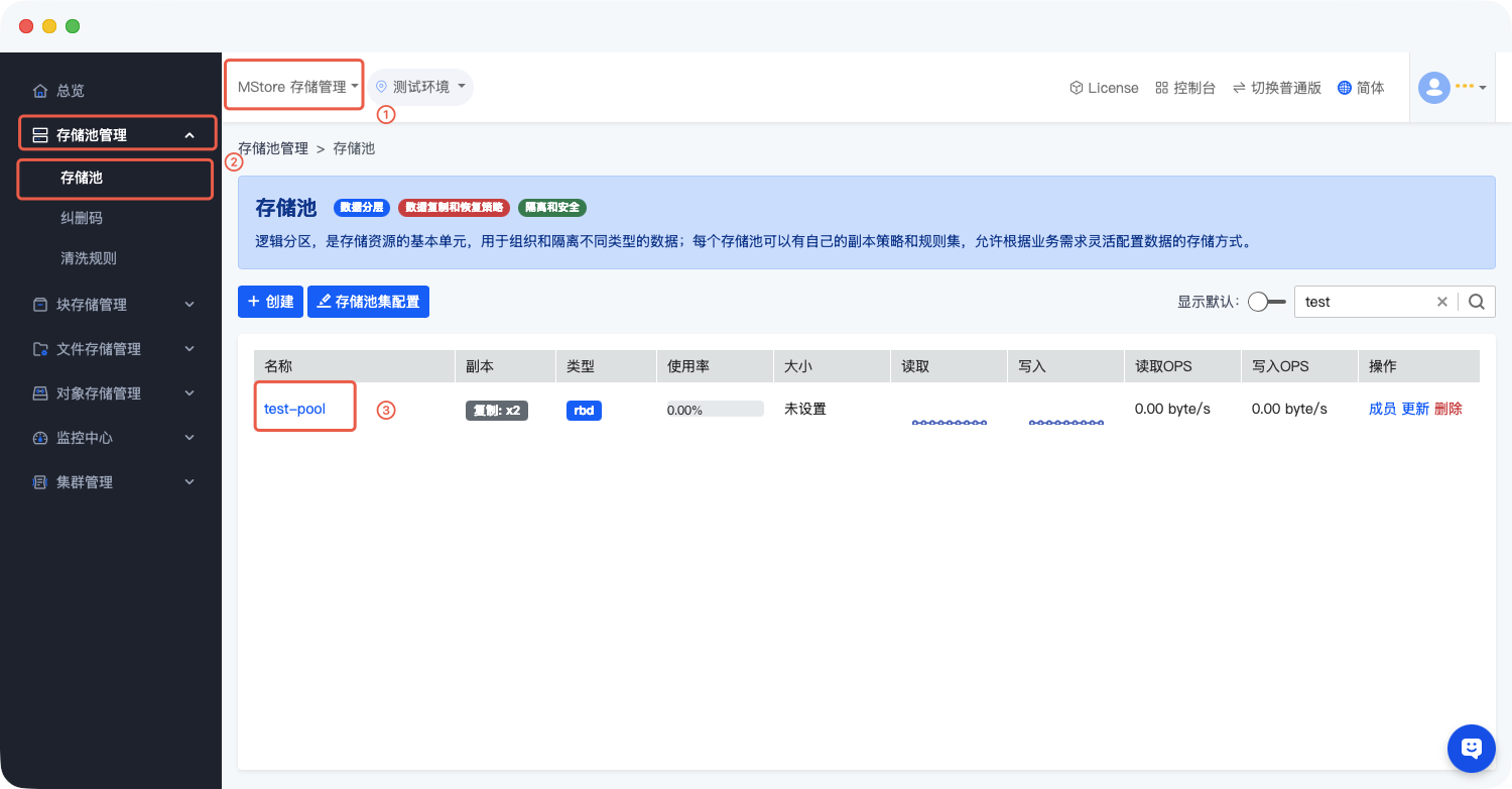 - 查看或者创建资源池:从集群中获取或者创建存储池(如示例中的