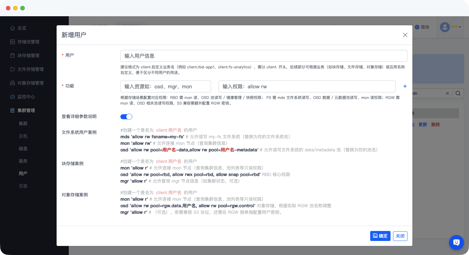 - 连接失败:检查 Monitor 地址是否正确、客户端与集群网络是否连通、防火墙是否开放相关端口(如 6789、3300);