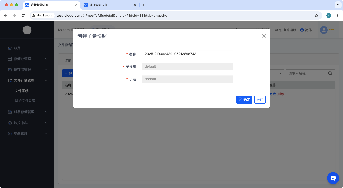 - 确认信息无误后,点击【确认】按钮,完成快照创建。