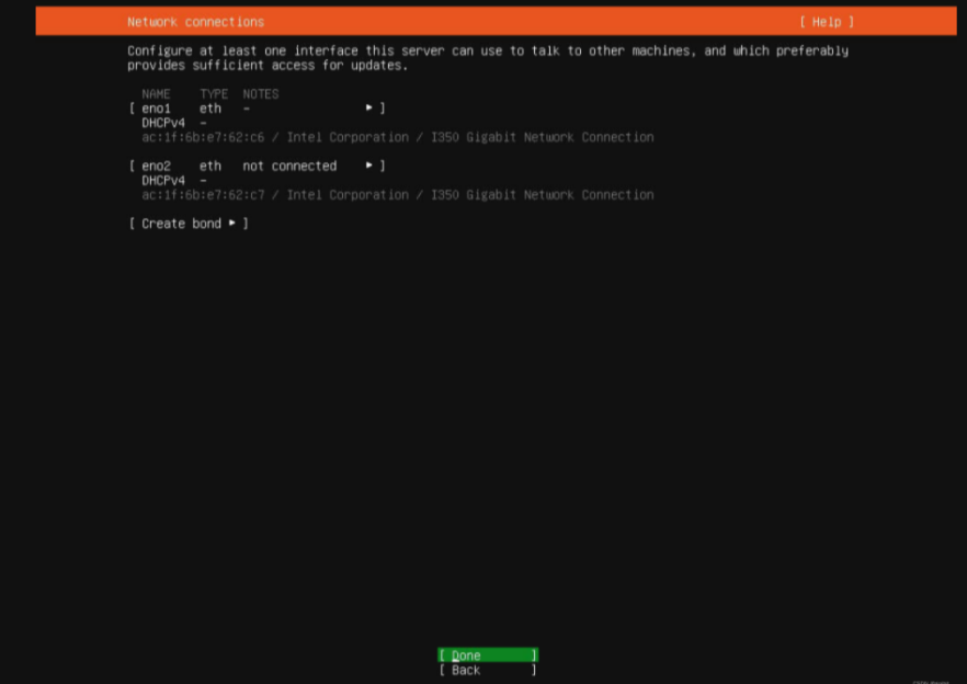 管理网、业务网和存储public、存储cluster网络使用双网口配置bond4,对应的交换机业务需要配置链路聚合(联系网工配置)。