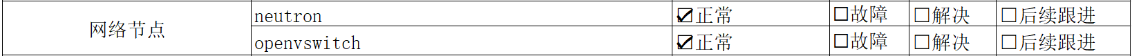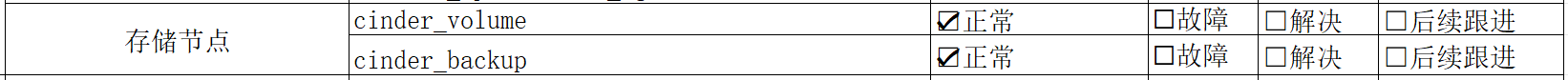 # 计算服务 ansible -i /root/multinode control -m shell -a "docker ps | grep nova_api" ansible -i /root/multinode control -m shell -a "docker ps | grep nova_conductor" ansible -i /root/multinode control -m shell -a "docker ps | grep nova_scheduler" ansible -i /root/multinode control -m shell -a "docker ps | grep nova_novncproxy" # 网络服务 ansible -i /root/multinode control -m shell -a "docker ps | grep neutron_server" # 块存储服务 ansible -i /root/multinode control -m shell -a "docker ps | grep cinder_api" ansible -i /root/multinode control -m shell -a "docker ps | grep cinder_scheduler" # 镜像服务 ansible -i /root/multinode control -m shell -a "docker ps | grep glance_api" # 认证服务 ansible -i /root/multinode control -m shell -a "docker ps | grep keystone$" ansible -i /root/multinode control -m shell -a "docker ps | grep keystone_fernet" ansible -i /root/multinode control -m shell -a "docker ps | grep keystone_ssh" 查看其他服务容器状态 ansible -i /root/multinode control -m shell -a "docker ps | grep placement_api" ansible -i /root/multinode control -m shell -a "docker ps | grep keepalived" ansible -i /root/multinode control -m shell -a "docker ps | grep heat_api" ansible -i /root/multinode control -m shell -a "docker ps | grep heat_engine" ansible -i /root/multinode control -m shell -a "docker ps | grep panko_api" ansible -i /root/multinode control -m shell -a "docker ps | grep skyline" ansible -i /root/multinode control -m shell -a "docker ps | grep horizon" ansible -i /root/multinode control -m shell -a "docker ps | grep memcached"