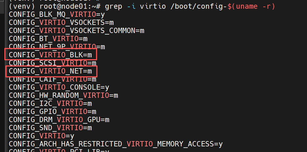 lsinitramfs /boot/initrd.img-$(uname -r) | grep virtio- 输出中包含