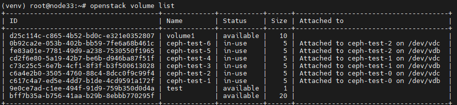 # 存储节点开启后,在控制节点上执行以下命令查看osd数量: docker exec -i -u root ceph_mon ceph -s # 然后使用以下命令取消之前设置的标签: docker exec -i -u root ceph_mon ceph osd set rebalance docker exec -i -u root ceph_mon ceph osd set backfill docker exec -i -u root ceph_mon ceph osd set in docker exec -i -u root ceph_mon ceph osd set recover docker exec -i -u root ceph_mon ceph osd set out开启计算节点