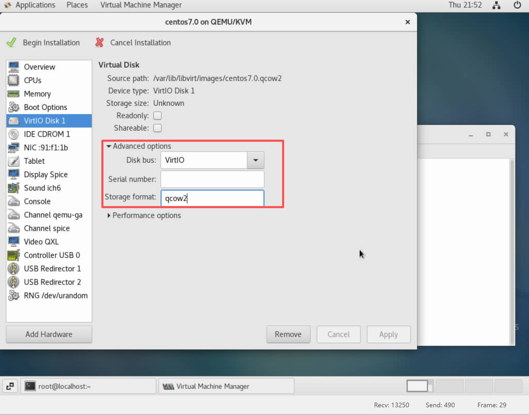 - 设置该虚拟机存储disk为qcow2格式: