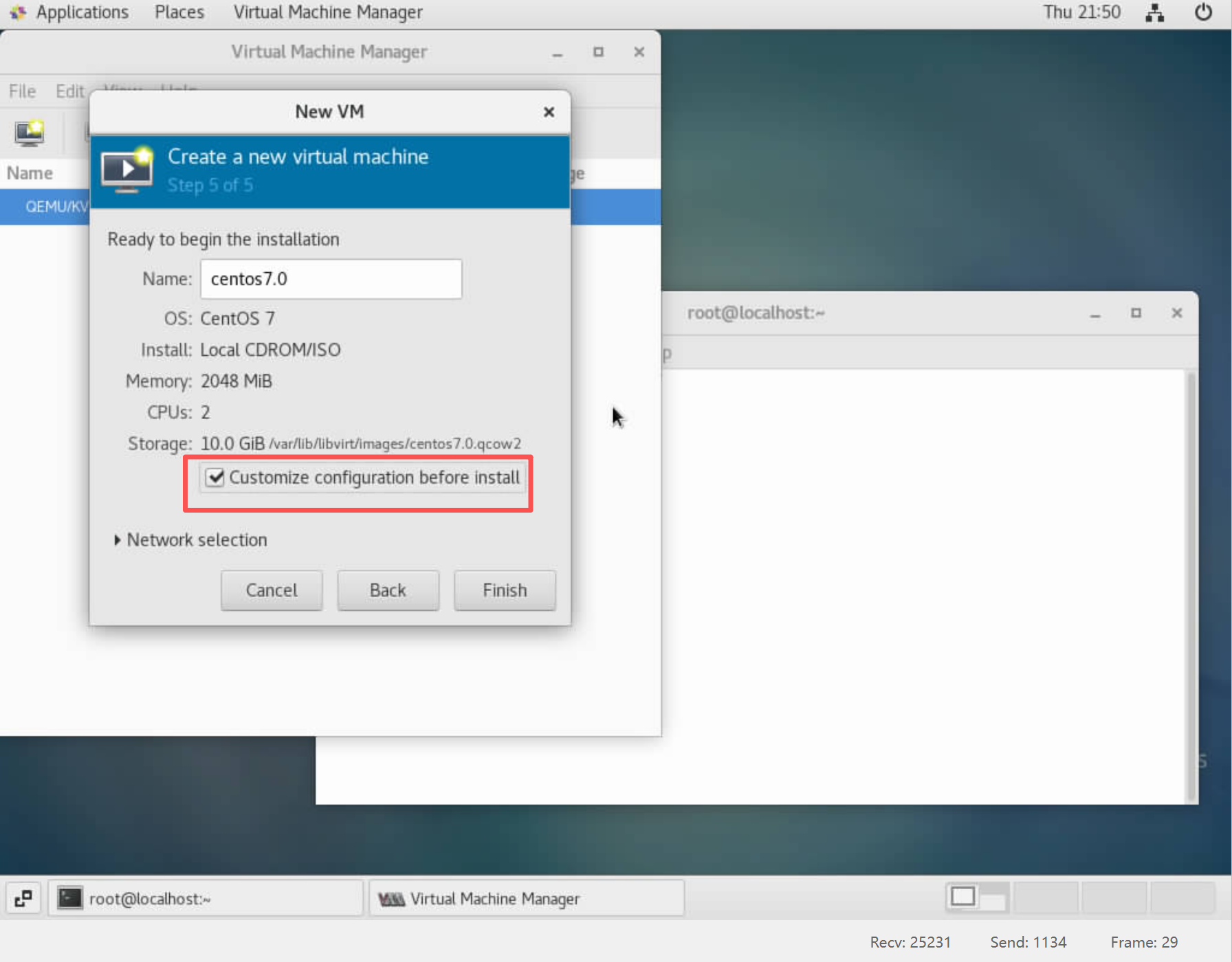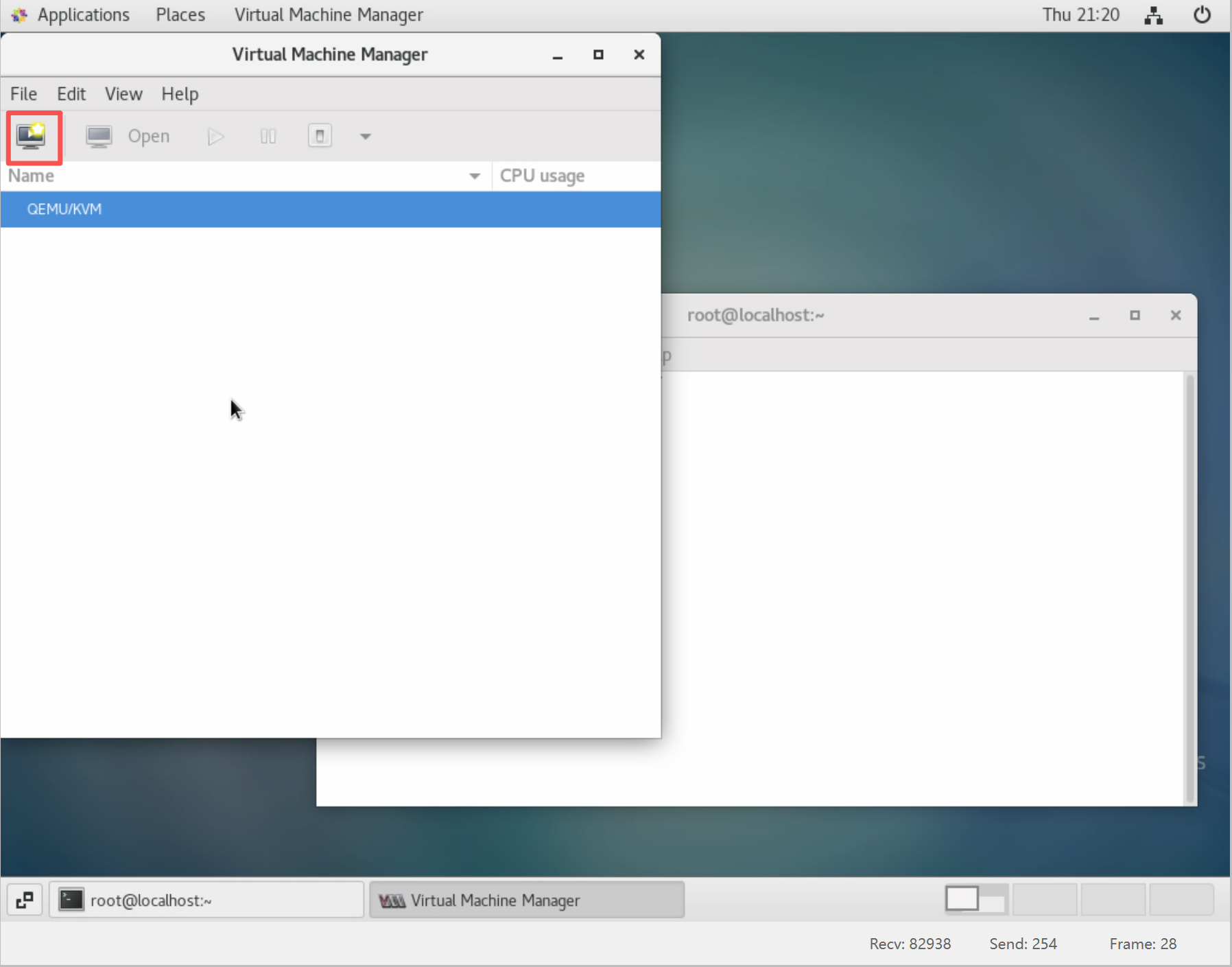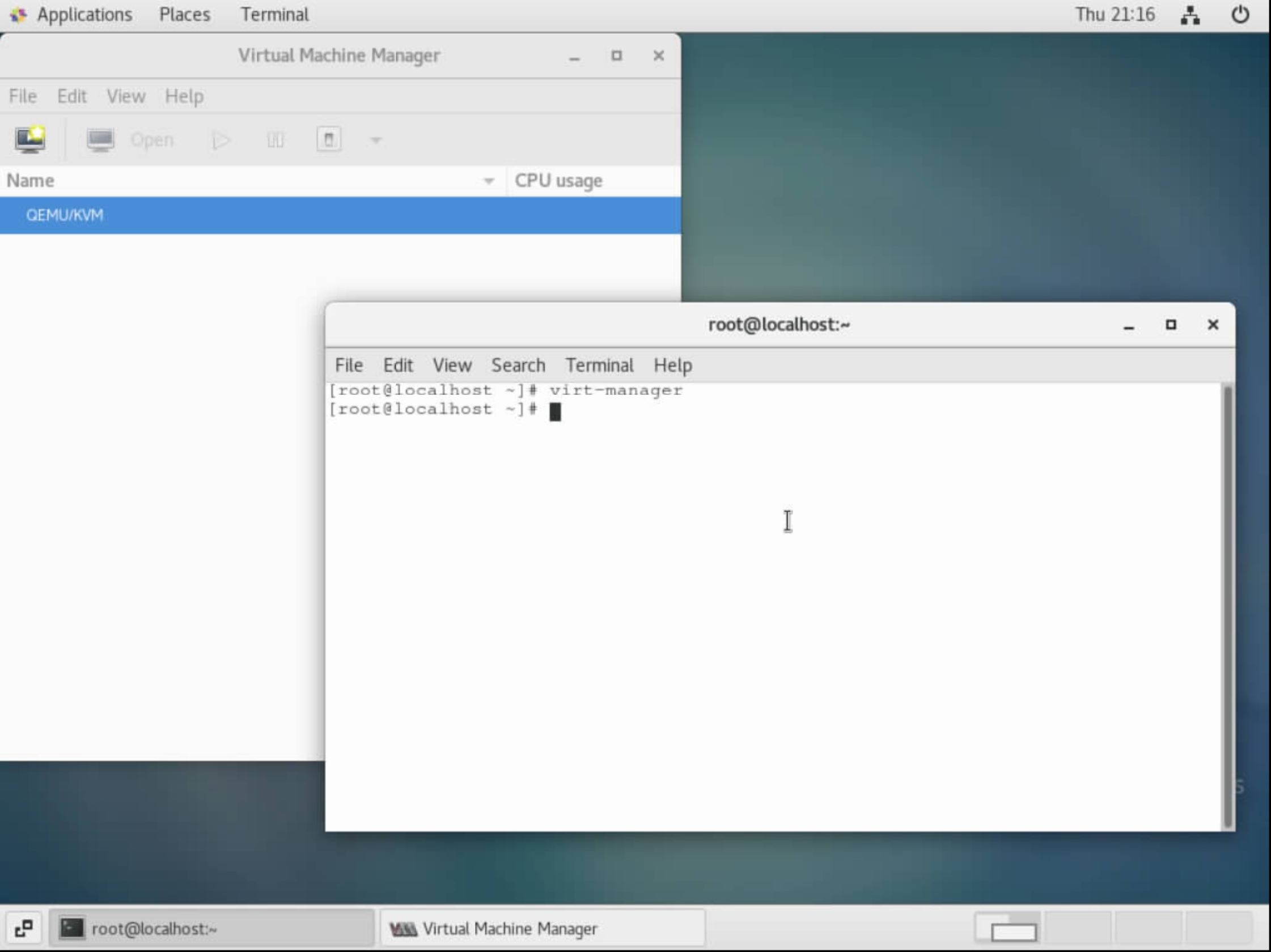 - 在terminal界面通过virt-manger命令启动virt-manger GUI操作界面: